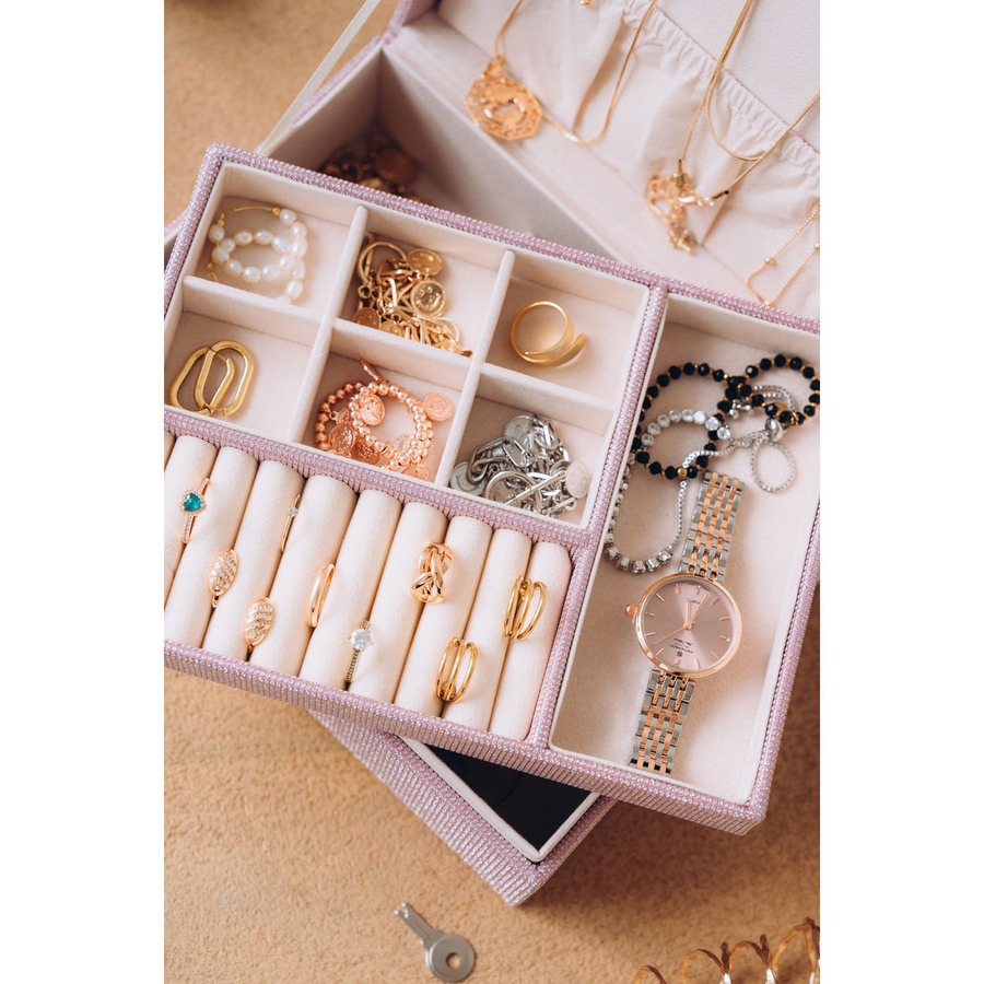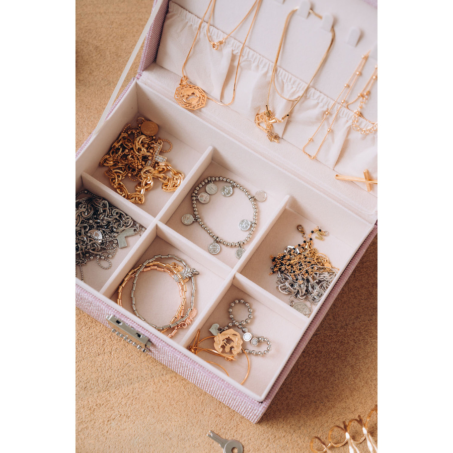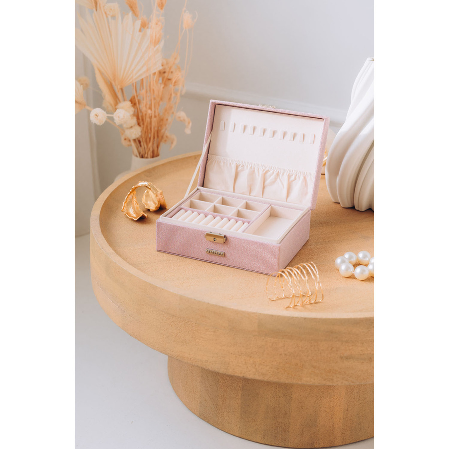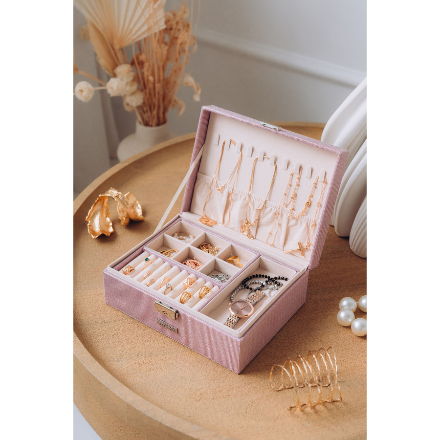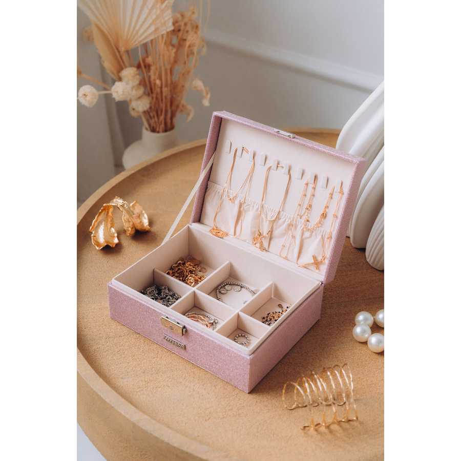 Każdy element ma swoje miejsce, co sprawia, że biżuteria zawsze wygląda perfekcyjnie – niezależnie od tego, czy używasz szkatułki w domu, czy zabierasz ją w podróż.
