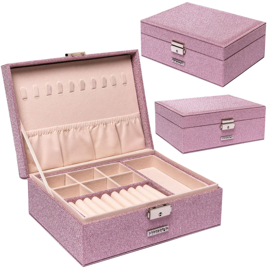 Szkatułka na biżuterię zamykana na kluczyk, różowa - Peterson
