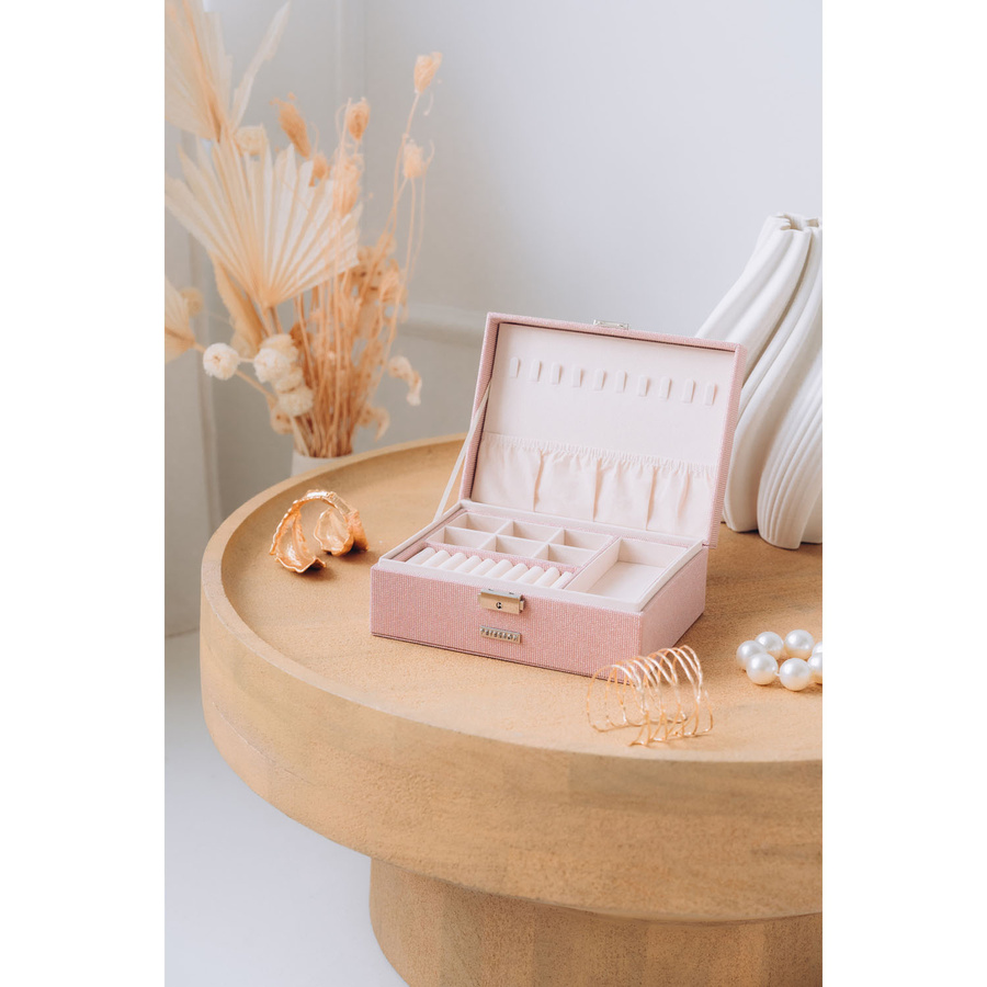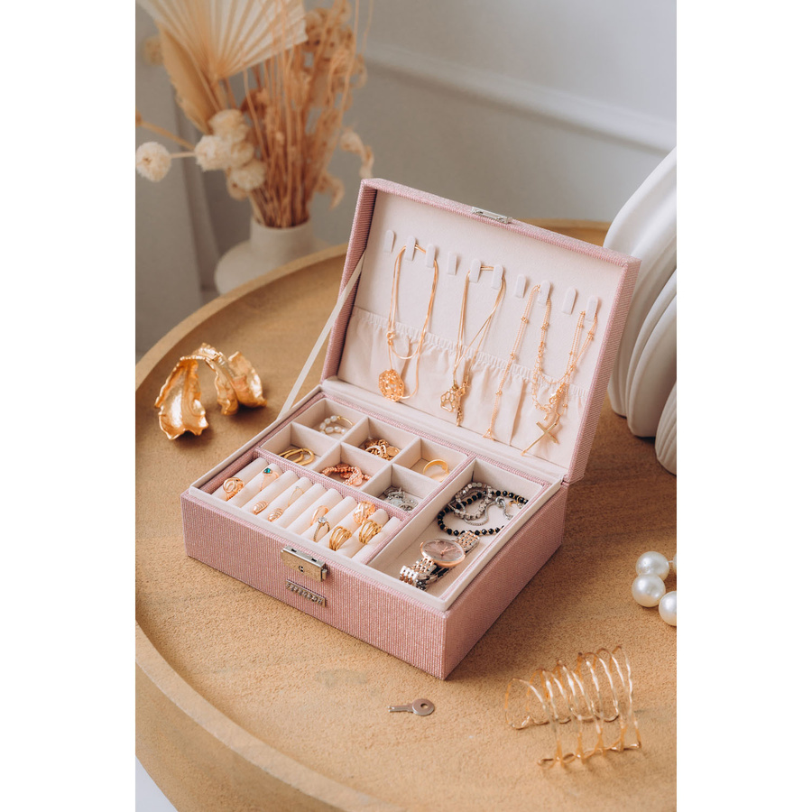 Każdy element ma swoje miejsce, co sprawia, że biżuteria zawsze wygląda perfekcyjnie – niezależnie od tego, czy używasz szkatułki w domu, czy zabierasz ją w podróż.