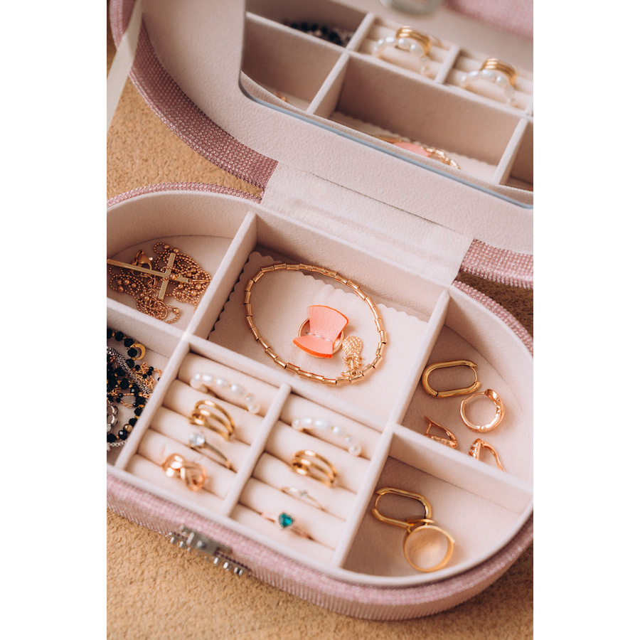 • Wbudowane lusterko, które pozwala wygodnie przymierzyć biżuterię w dowolnym miejscu.