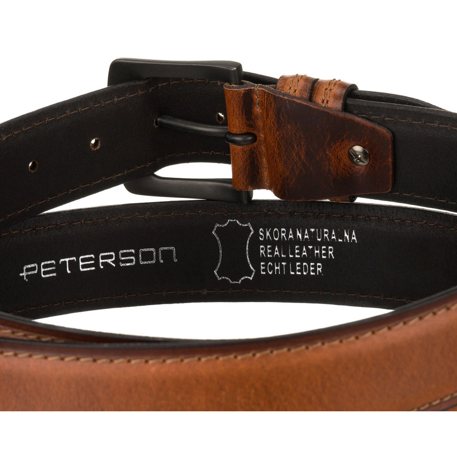 Skórzany, brązowy pasek męski z klasyczną klamrą i dwiema szlufkami - Peterson