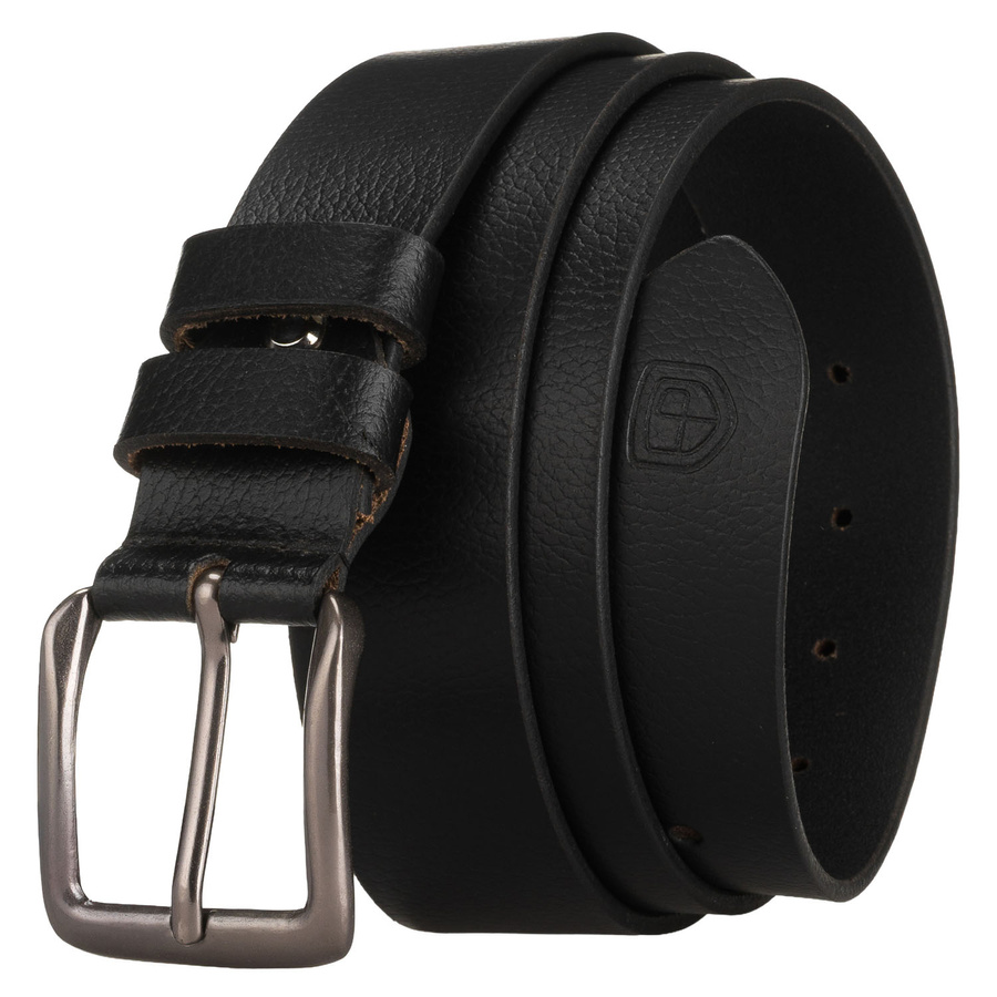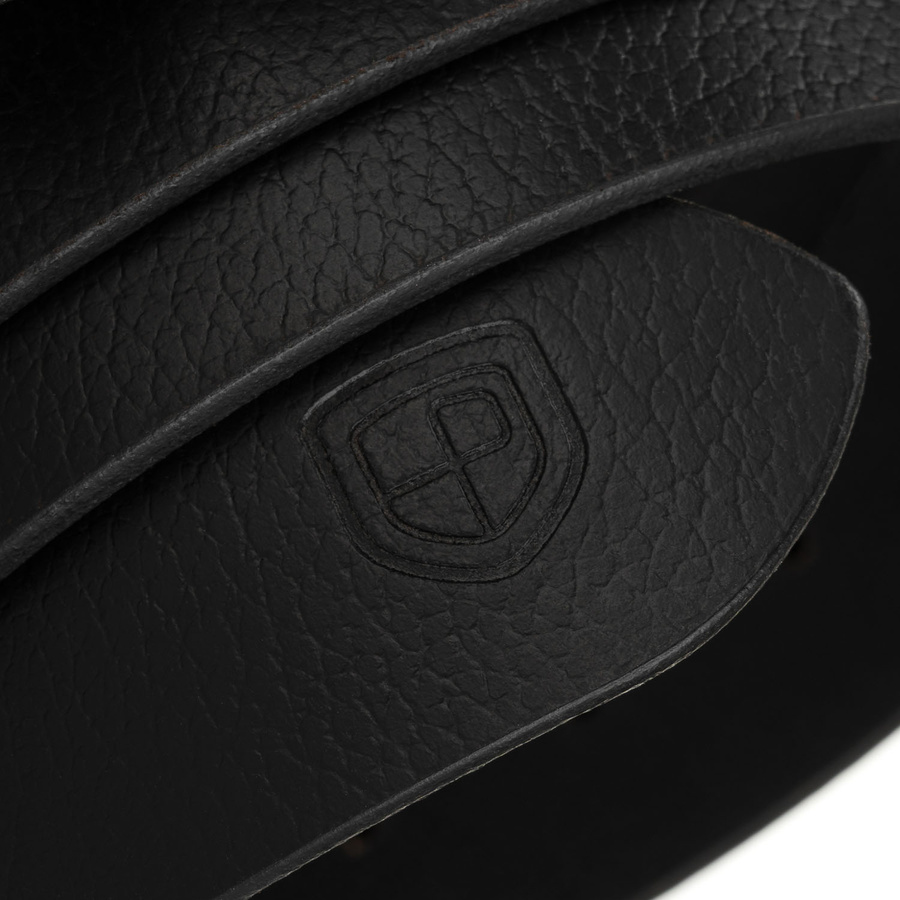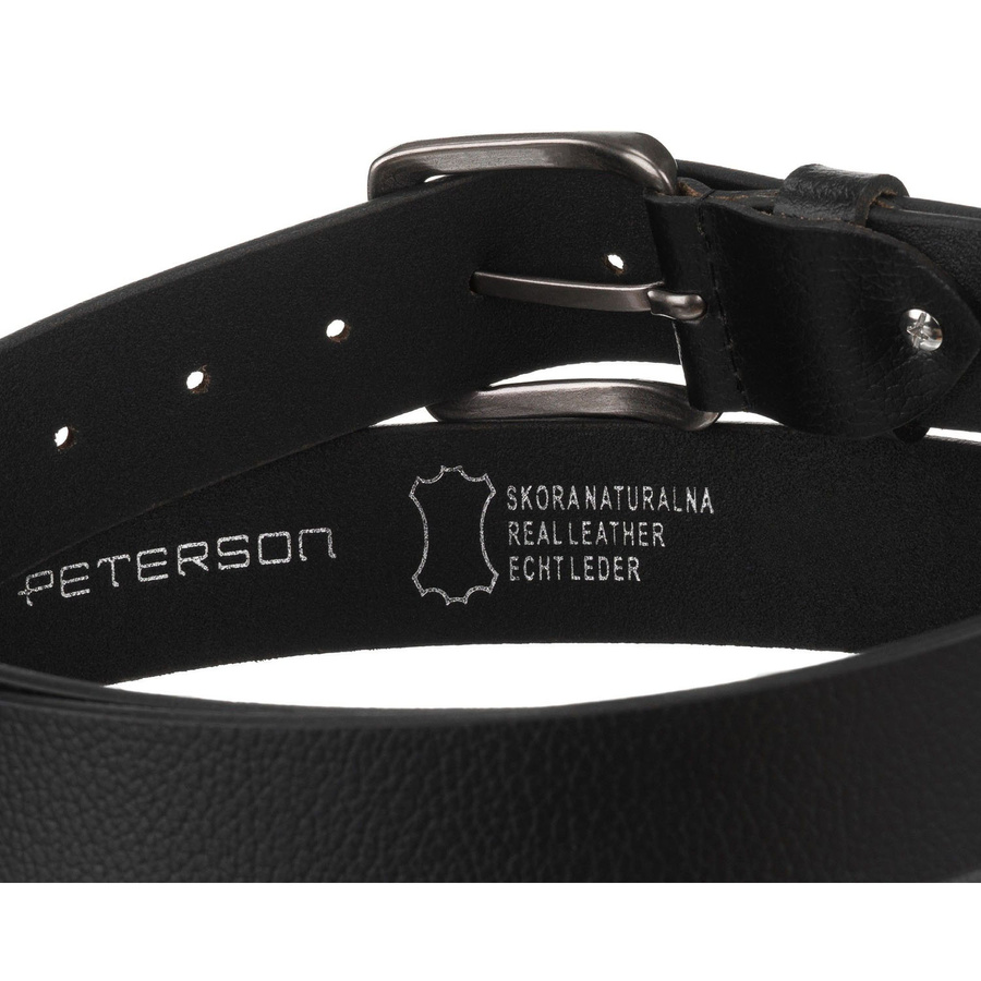 Klasyczny, skórzany, czarny pasek męski z tradycyjną klamrą - Peterson