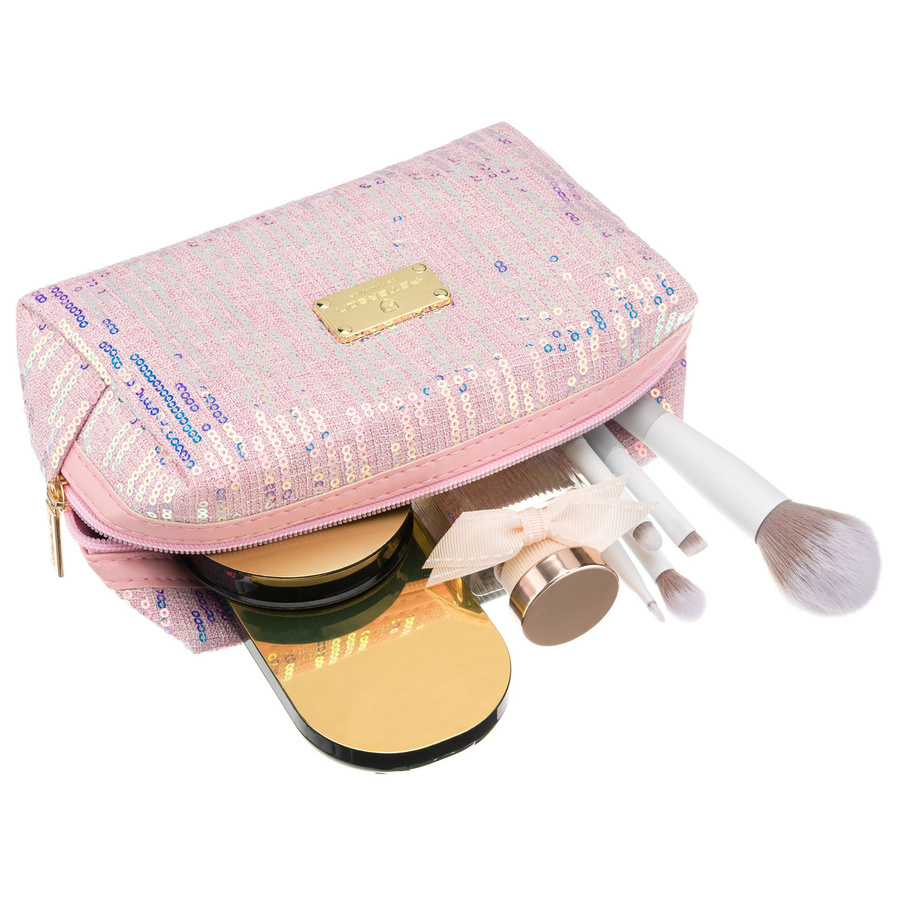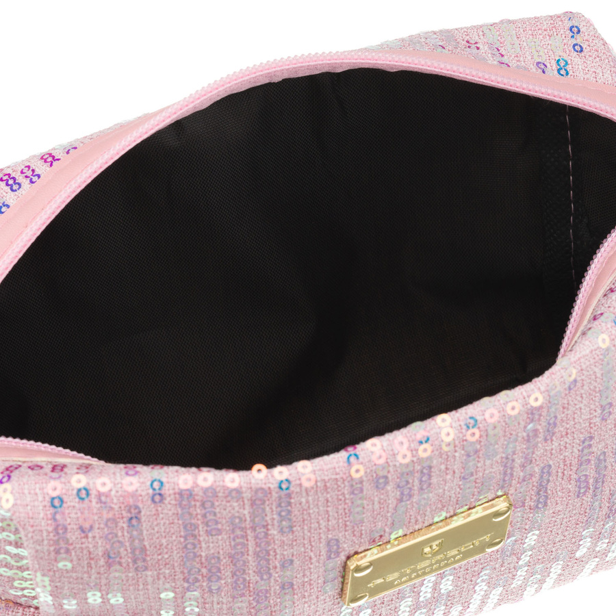 Różowa kosmetyczka z poliestru ozdobiona cekinami, jednokomorowa - Peterson