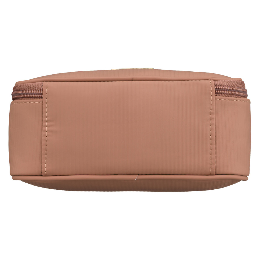 - W środku znajduje się pojemna komora główna, idealna na codzienne kosmetyki i akcesoria. Możesz w niej przechowywać produkty do makijażu, pielęgnacji, a także drobne gadżety, jak biżuteria, gumki do włosów czy perfumy w małych flakonach.