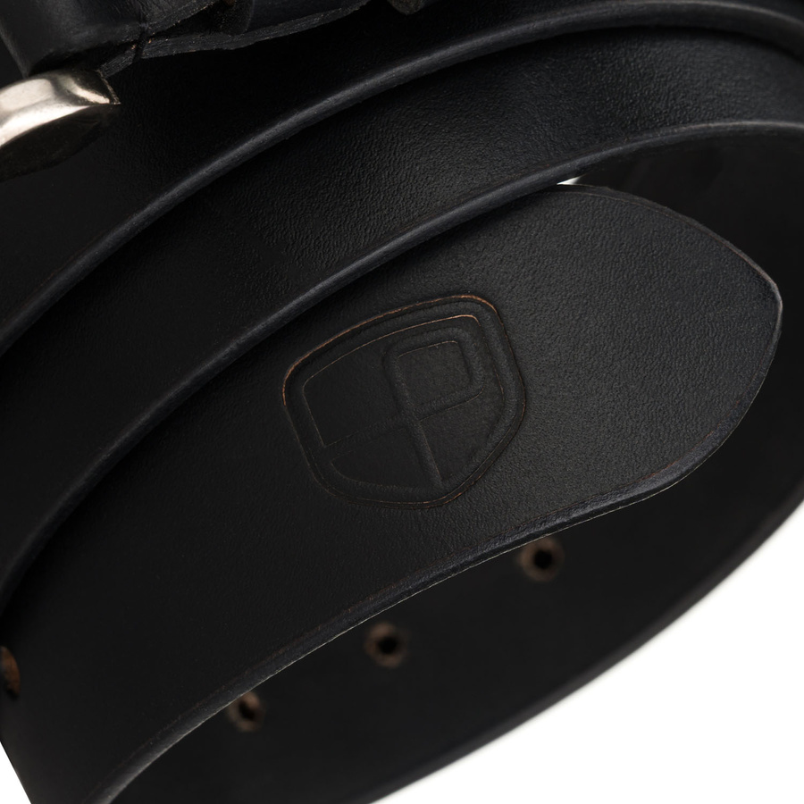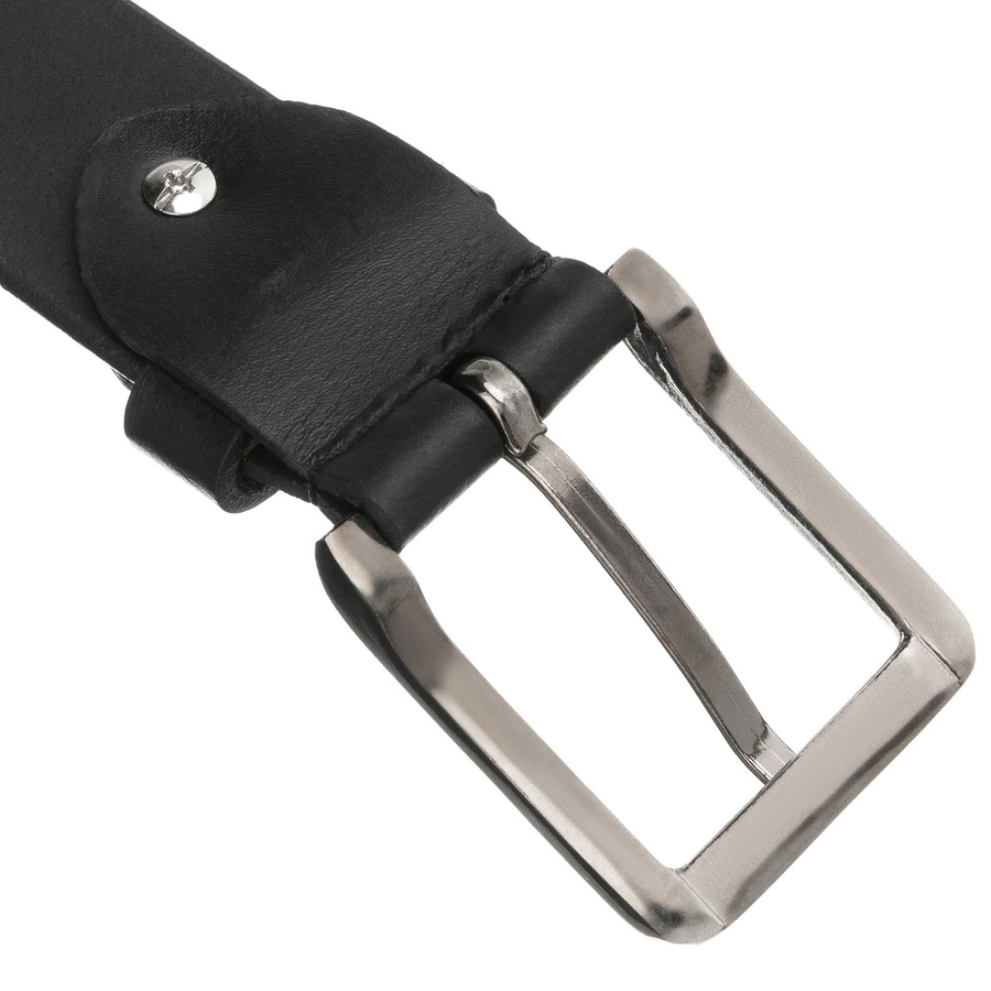 Skórzany, czarny pasek męski z tradycyjną klamrą - Peterson
