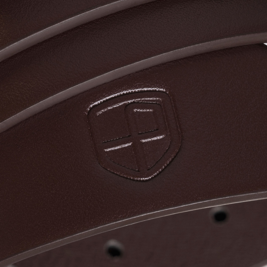 Brązowy, wąski pasek damski ze skóry ekologicznej - Peterson