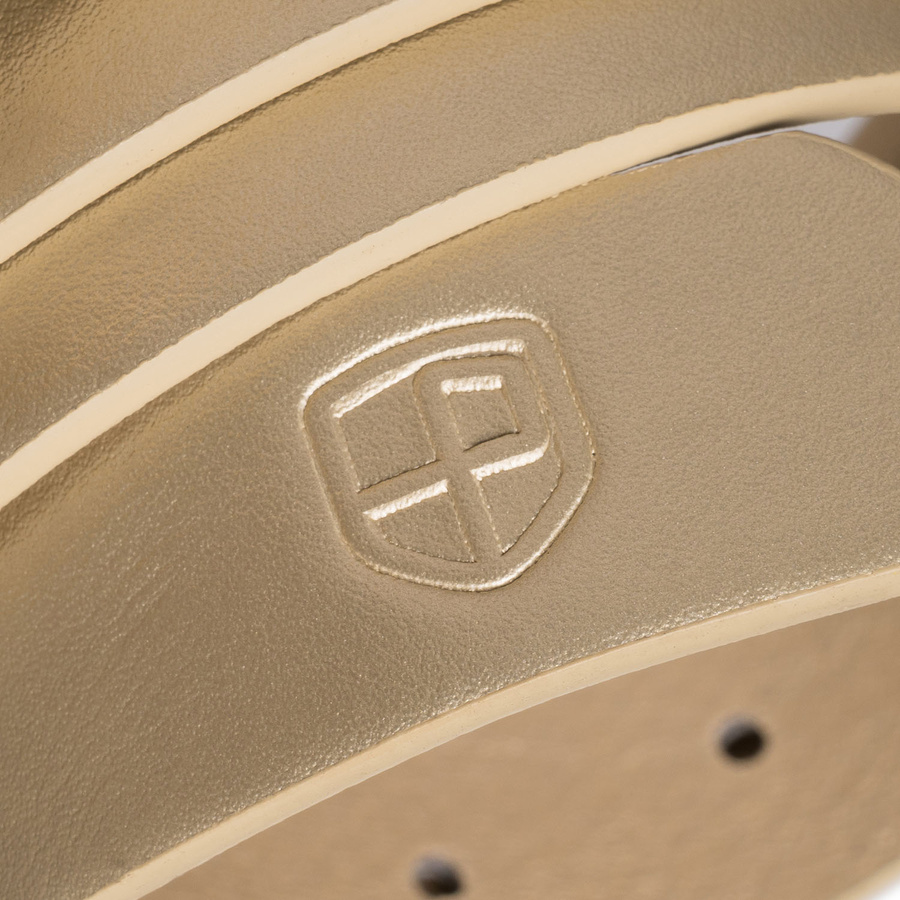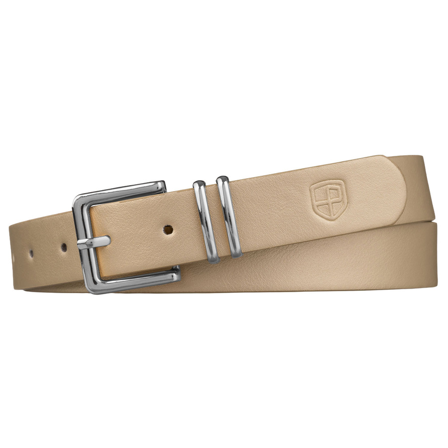 Beżowy pasek damski ze skóry ekologicznej ze srebrną, klasyczną klamrą - Peterson