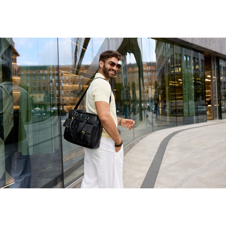 Poznaj torbę, która łączy elegancję klasy premium z praktycznym wnętrzem idealnym dla nowoczesnego mężczyzny. Model został wykonany z wysokiej jakości naturalnej skóry, co gwarantuje nie tylko wyjątkowy wygląd, ale i trwałość na lata. Doskonała do pracy, na spotkania biznesowe i codzienne wyjścia z laptopem czy dokumentami A4.