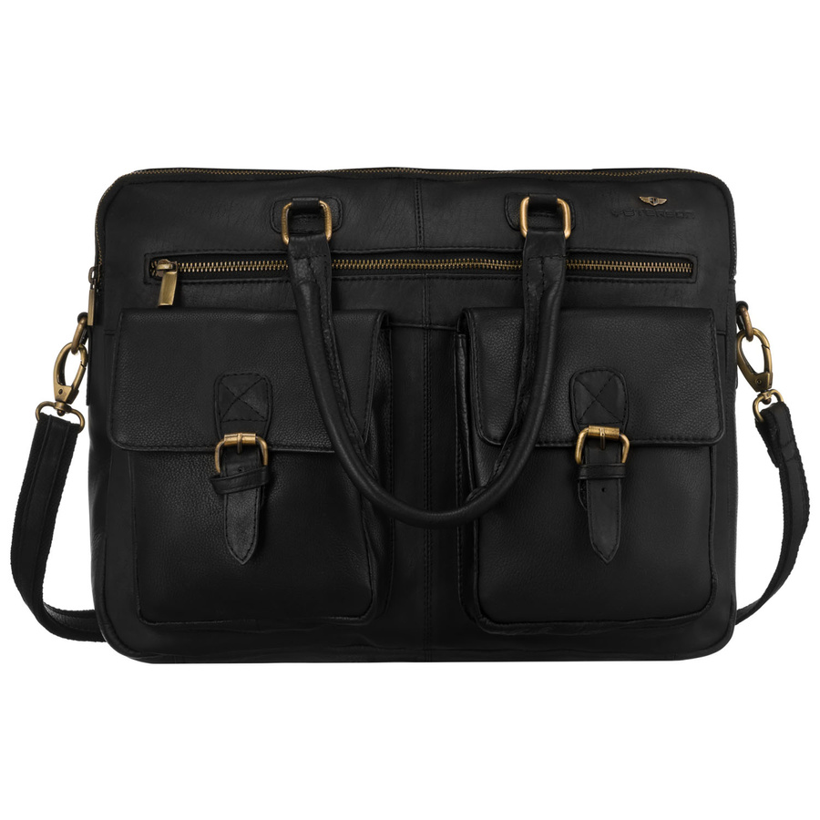 Męska torba na laptopa ze skóry naturalnej w czarnym kolorze - Peterson