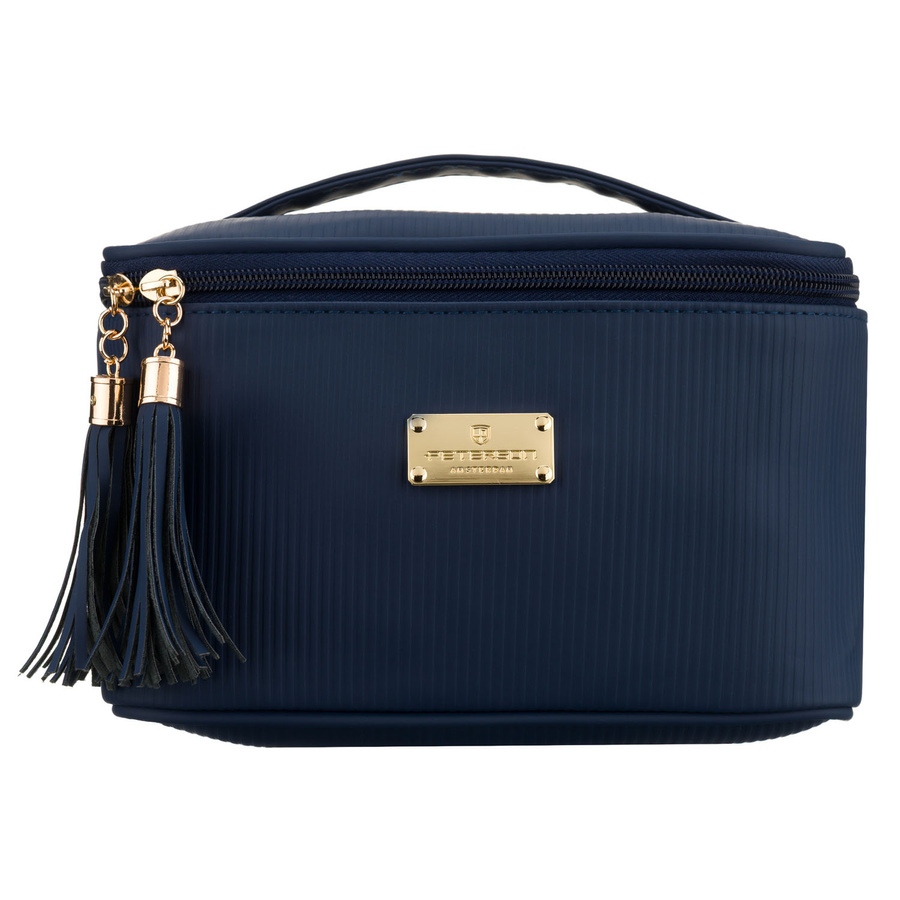 Granatowa kosmetyczka z tkaniny syntetycznej z poręcznym uchwytem - Peterson