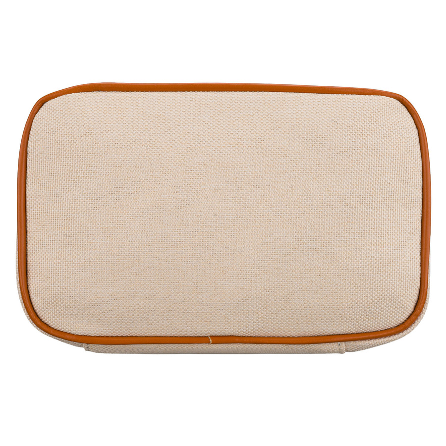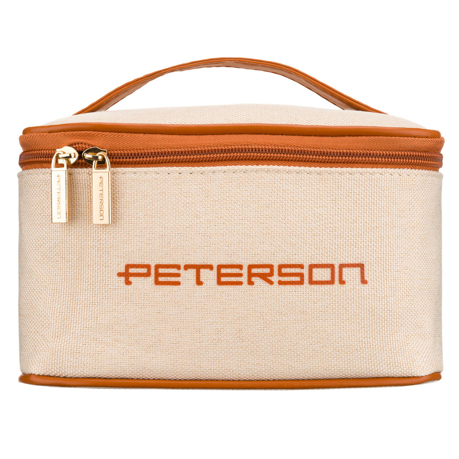 Beżowo-brązowa kosmetyczka z tkaniny syntetycznej wyposażona w uchwyt, zamykana suwakiem - Peterson