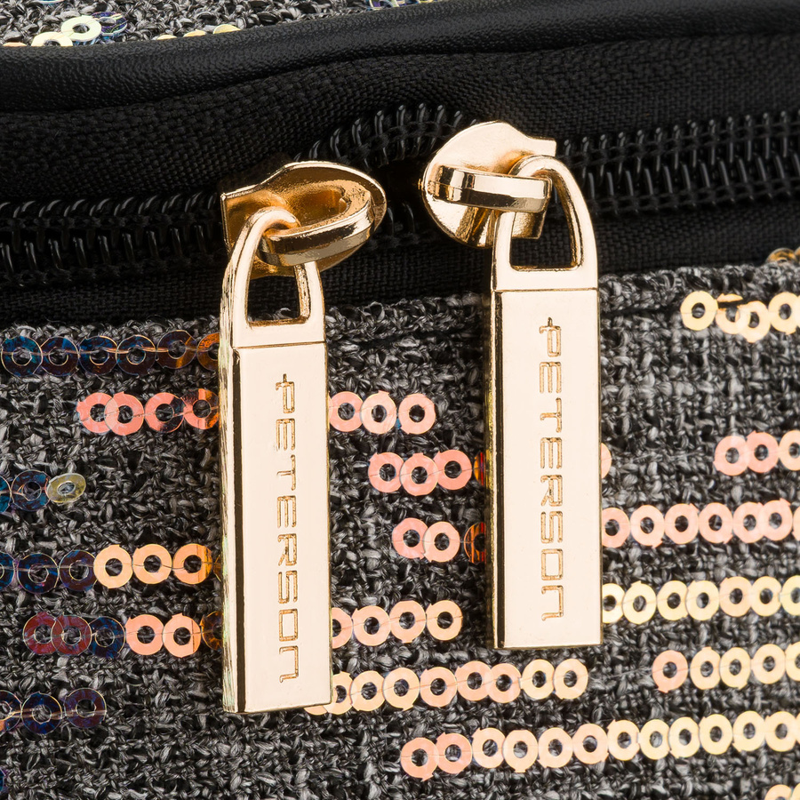 Czarna, podróżna kosmetyczka z tkaniny syntetycznej ozdobiona cekinami - Peterson