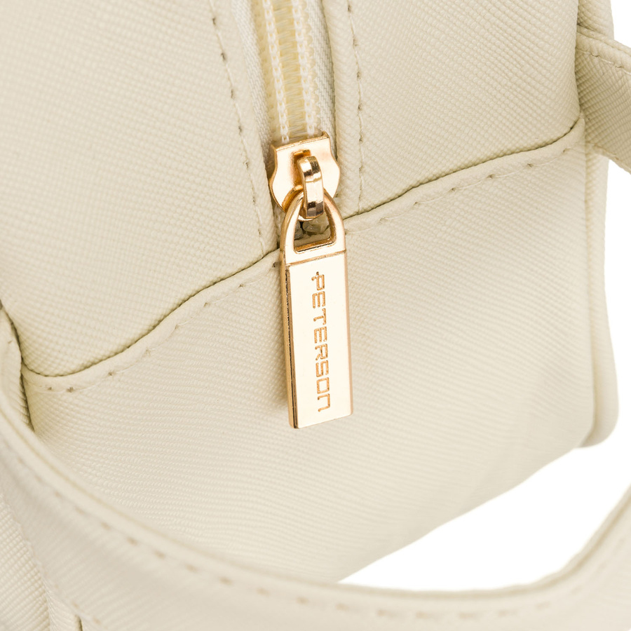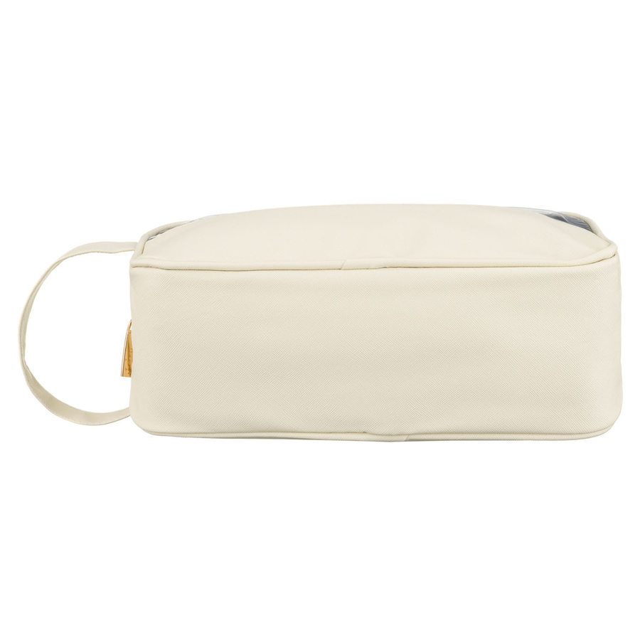 Kosmetyczka z tkaniny syntetycznej w kolorze ecru, wyposażona w przezroczysty panel - Peterson
