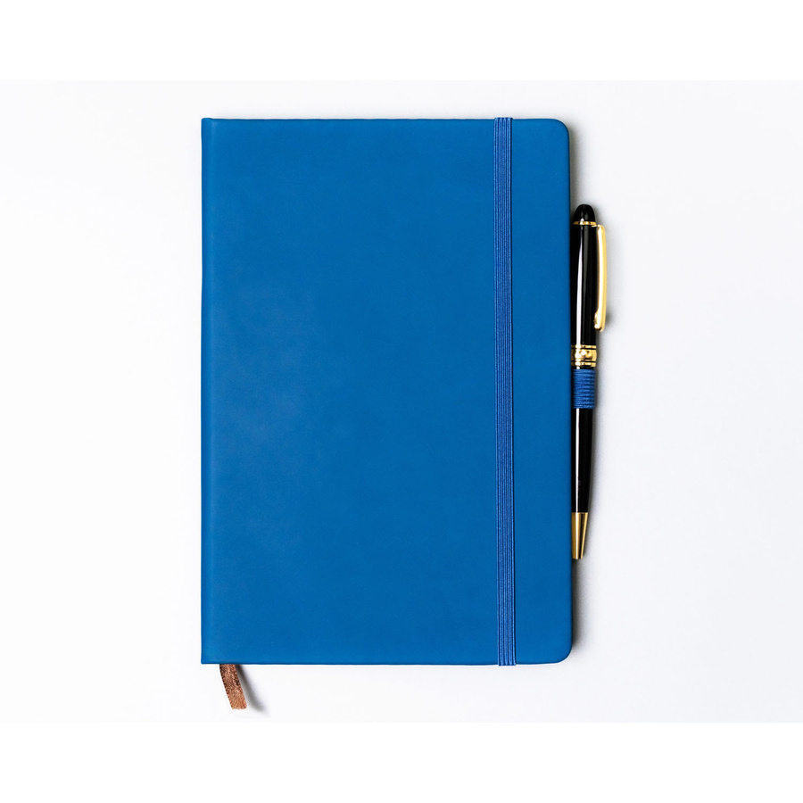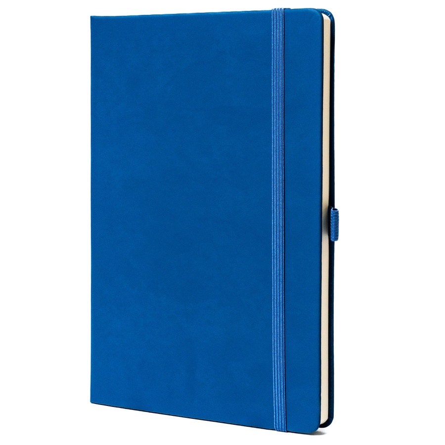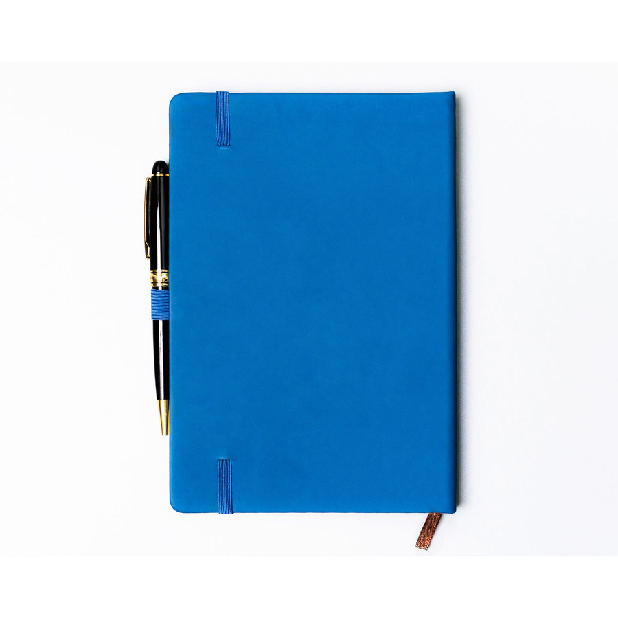 Niebieski notes w twardej oprawie formacie A5 zadrukowany w linie, wyposażony w gumkę zamykającą - Peterson