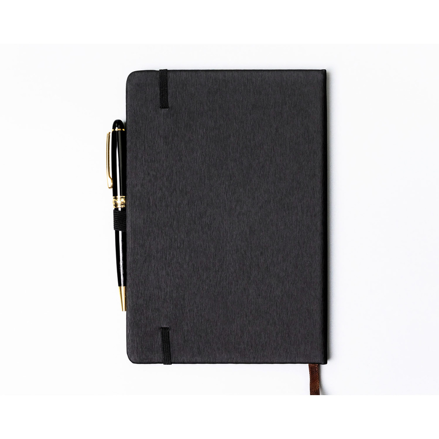 Czarny notes w formacie A5 zadrukowany w kropki, wyposażony w gumkę zamykającą - Peterson
