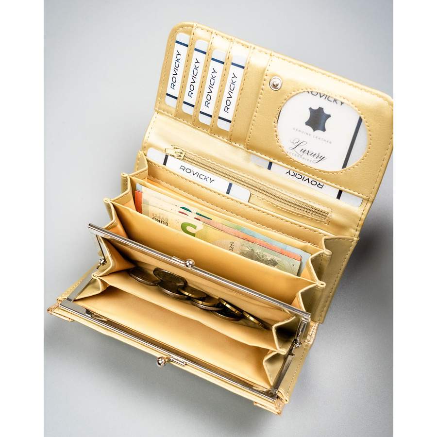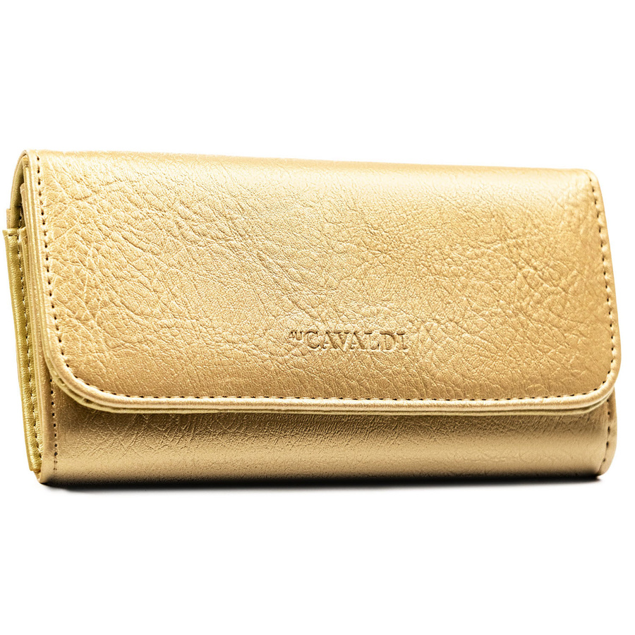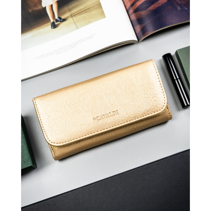 Duży portfel damski ze skóry ekologicznej w złotym kolorze, zamykany zatrzaskiem - 4U Cavaldi
