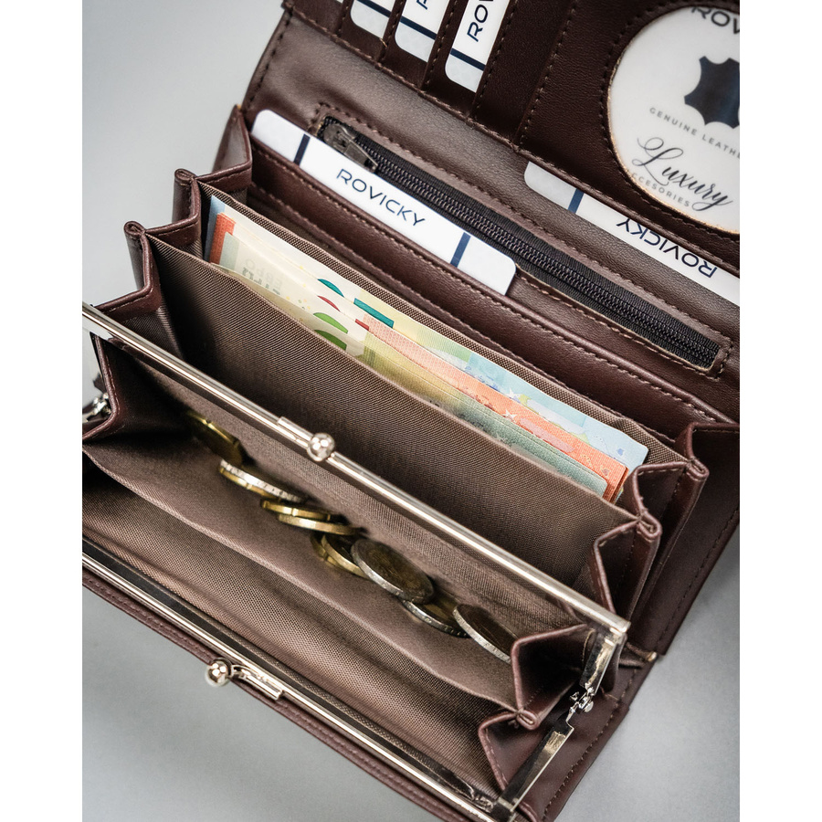 Ten model łączy szyk z funkcjonalnością, zapewniając wygodę użytkowania każdego dnia i podczas ważniejszych wyjść. Z łatwością pomieści wszystkie potrzebne drobiazgi, pomagając zachować porządek w dokumentach, kartach oraz gotówce. To doskonała propozycja dla osób, które oczekują harmonii między stylem a praktycznością.