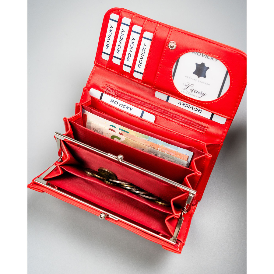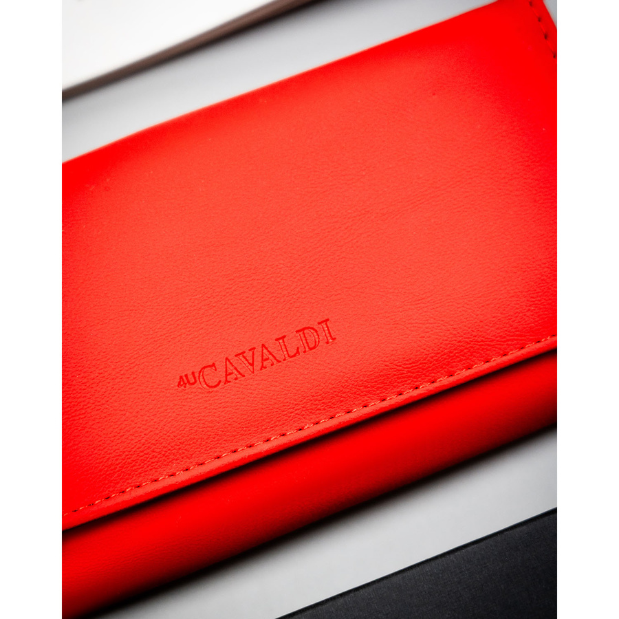 Duży portfel damski ze skóry ekologicznej w czerwonym kolorze z kieszonką zewnętrzną, zamykany na zatrzask - 4U Cavaldi