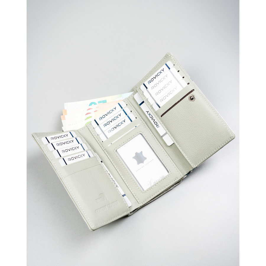 • Jakość i styl | Portfel jest odszyty z najwyższej jakości skóry naturalnej i ekologicznej. Środek portfela jest wykończony skórą naturalną o ziarnistej fakturze, zaś strona zewnętrzna to skóra eko. Front portfela zdobią przepiękne zdobienia w postaci kwiatów