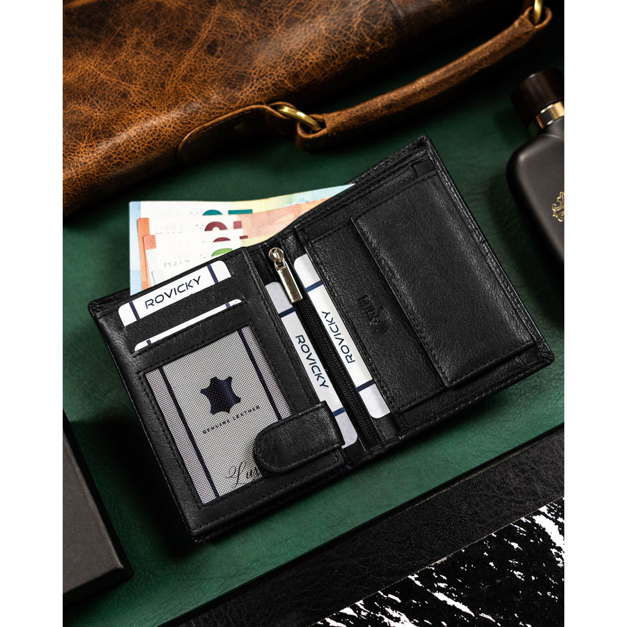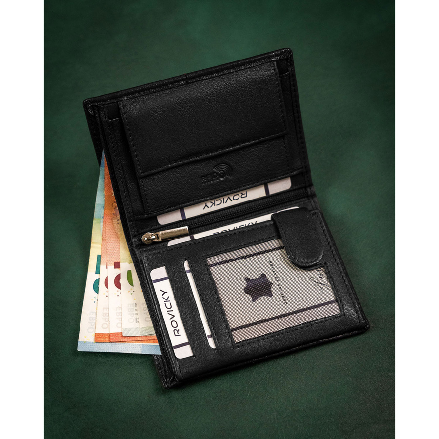 Duży, skórzany portfel męski w czarnym kolorze wyposażony w system RFID - Rovicky