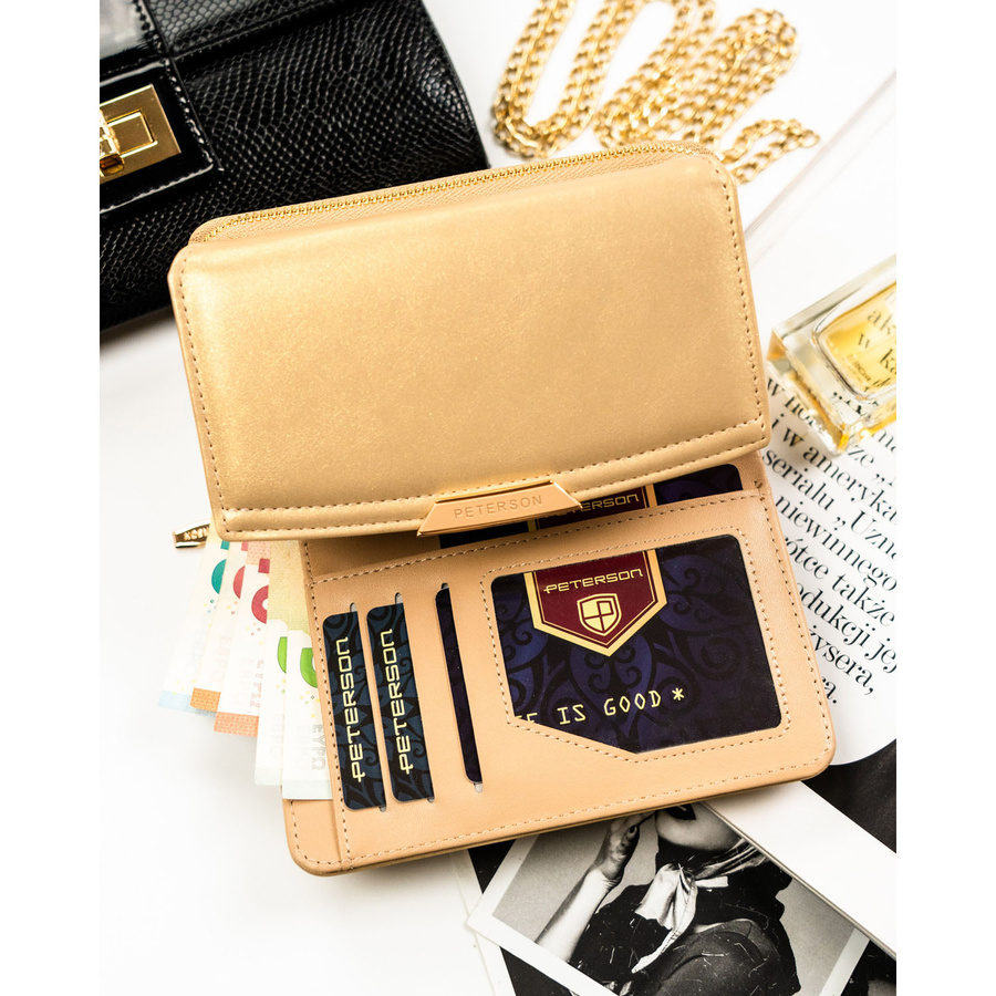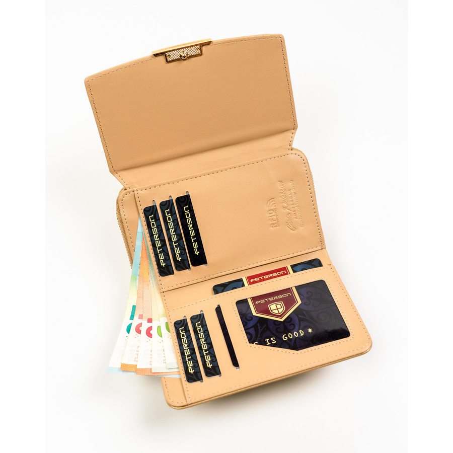 Portfel damski ze skóry ekologicznej w ciemnobeżowym kolorze, wyposażony w system RFID - Peterson