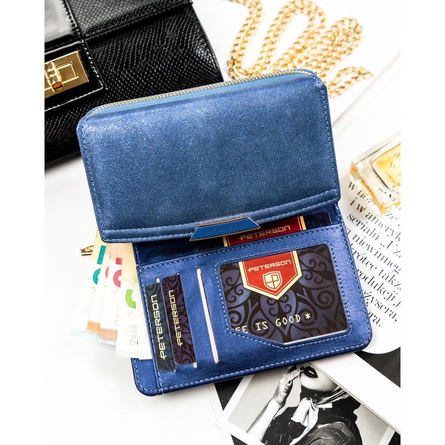 Granatowy portfel damski ze skóry ekologicznej wyposażony w system RFID - Peterson