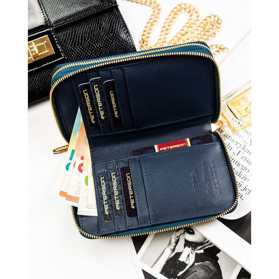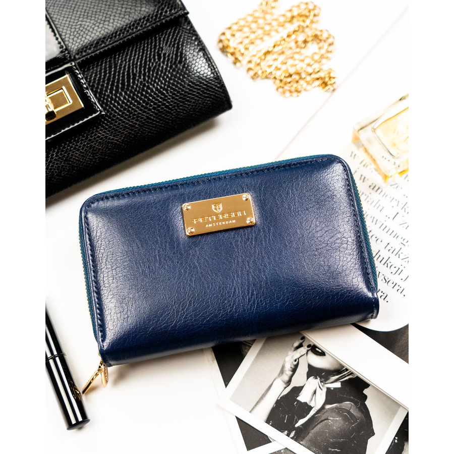 Granatowy portfel damski w typie piórnika ze skóry ekologicznej zamykany suwakiem - Peterson