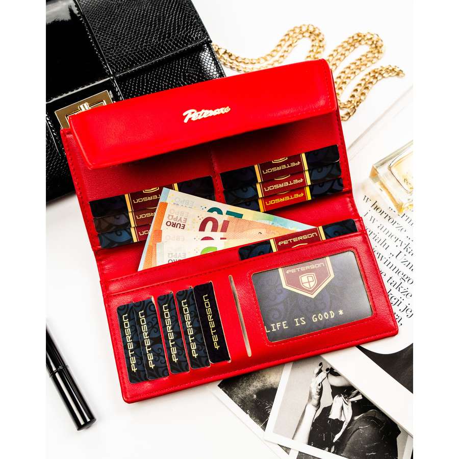 Czerwony portfel damski ze skóry ekologicznej zamykany zatrzaskiem - Peterson