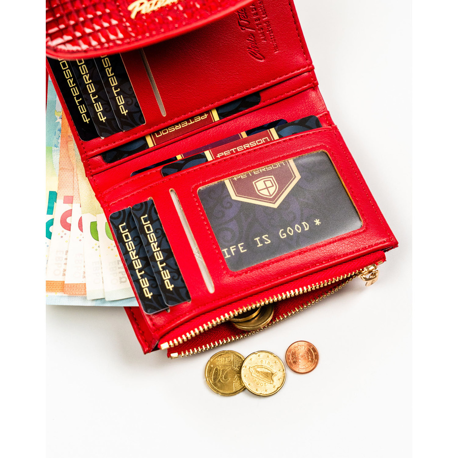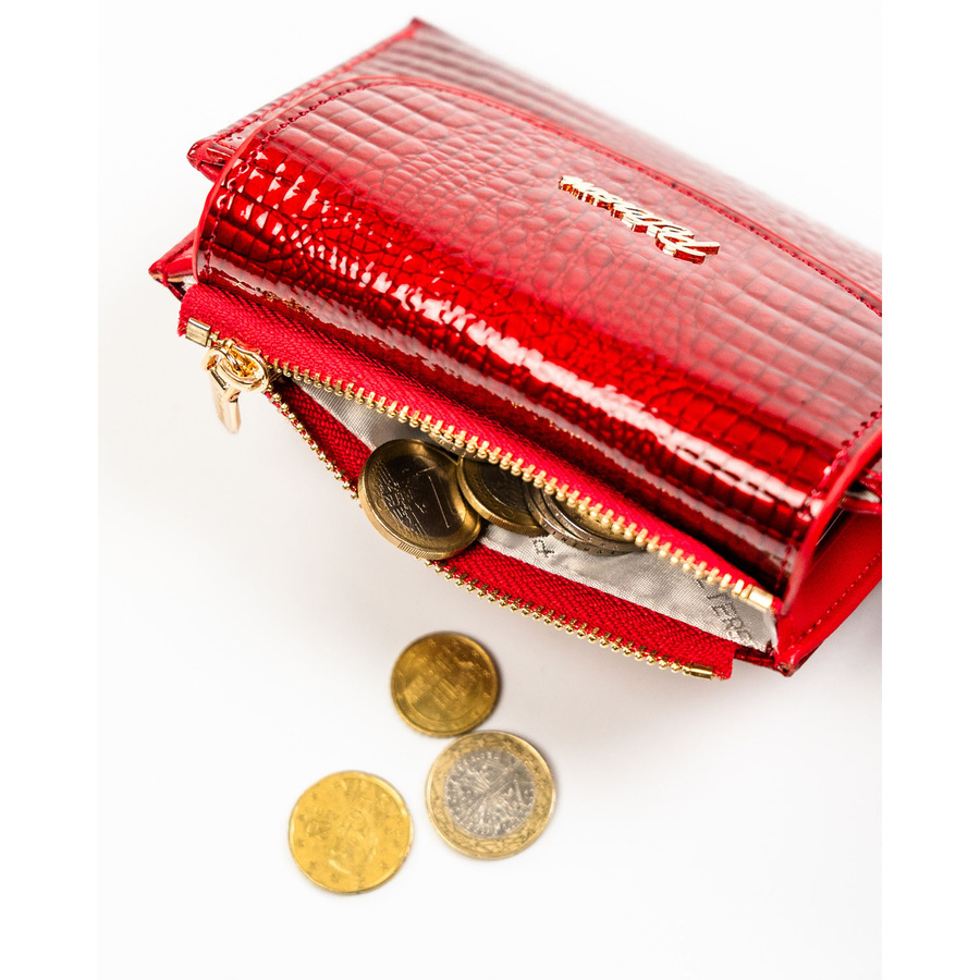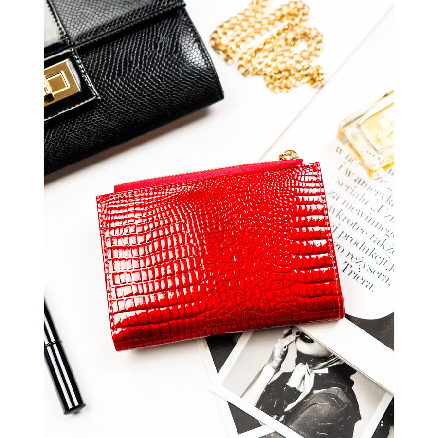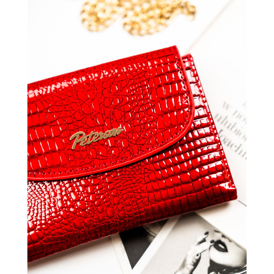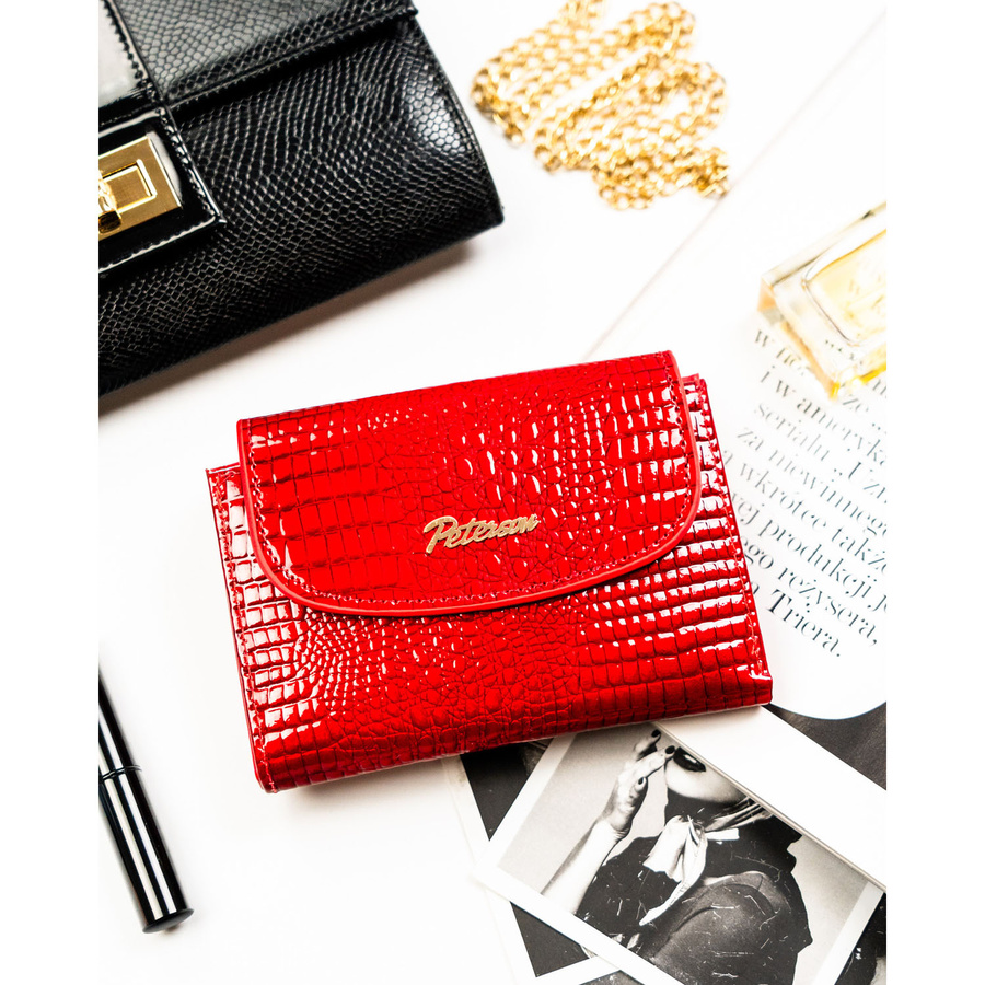 Poziomy, czerwony portfel damski ze skóry ekologicznej z tłoczeniem na wzór skóry krokodyla - Peterson