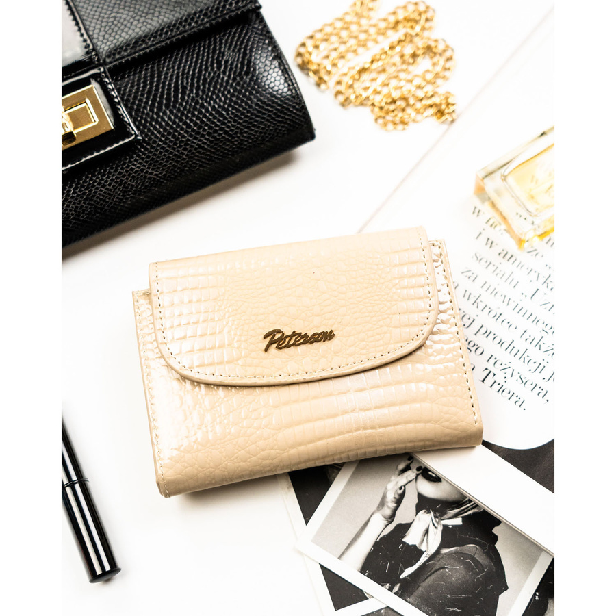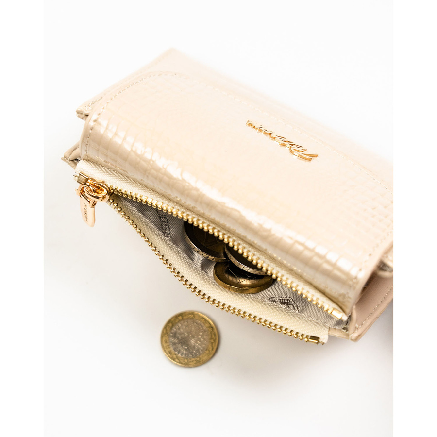 Poziomy, beżowy portfel damski ze skóry ekologicznej z tłoczeniem na wzór skóry krokodyla - Peterson