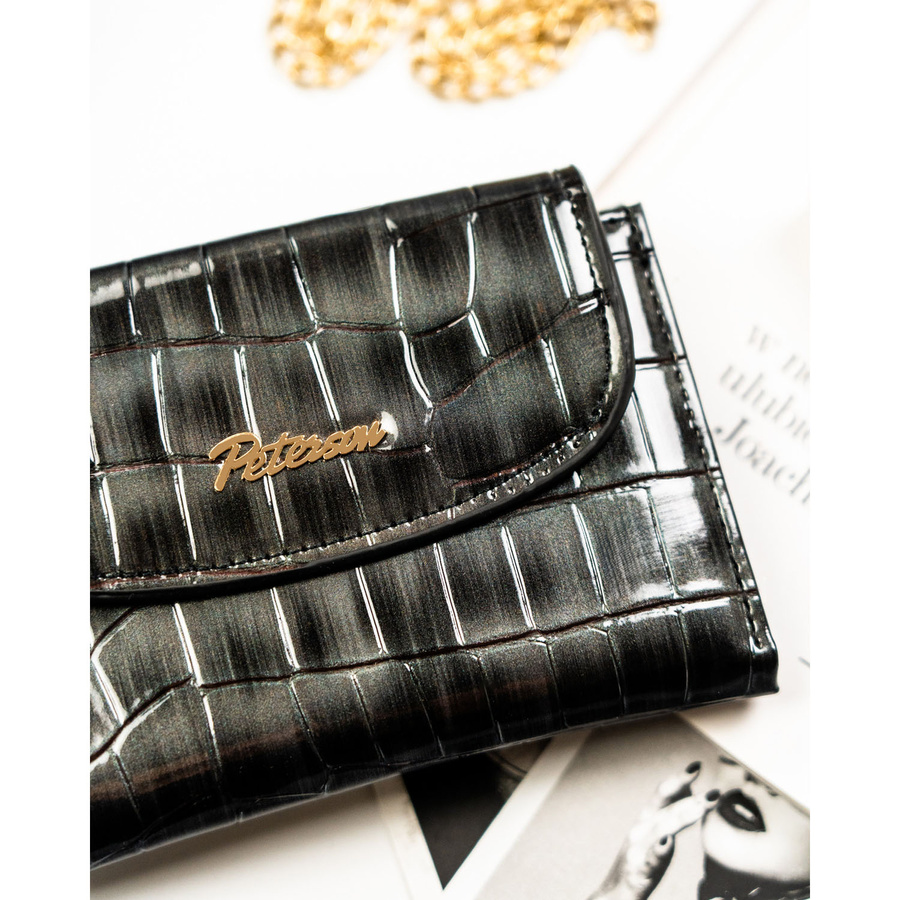 Szary portfel damski ze skóry ekologicznej z tłoczeniem na wzór skóry krokodyla - Peterson