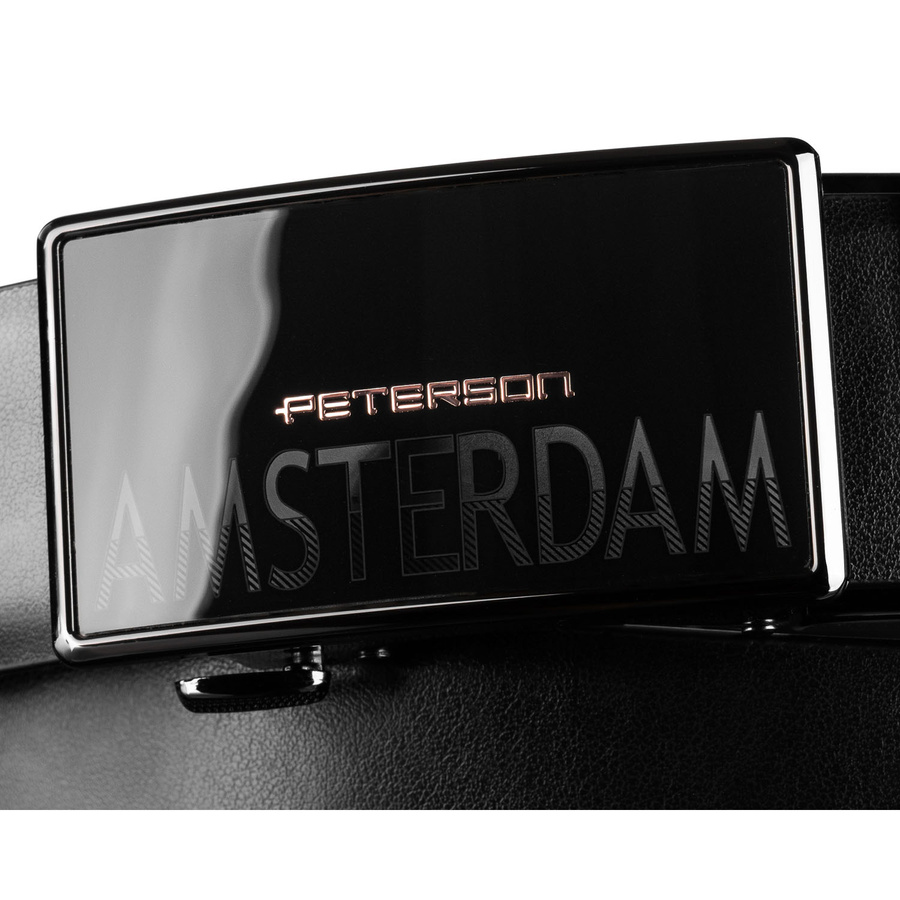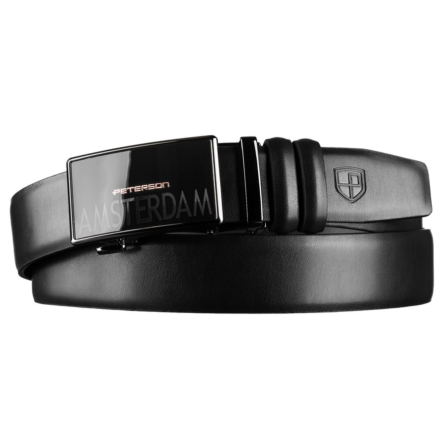 Czarny, elegancki pasek męski ze skóry naturalnej z automatyczną klamrą - Peterson