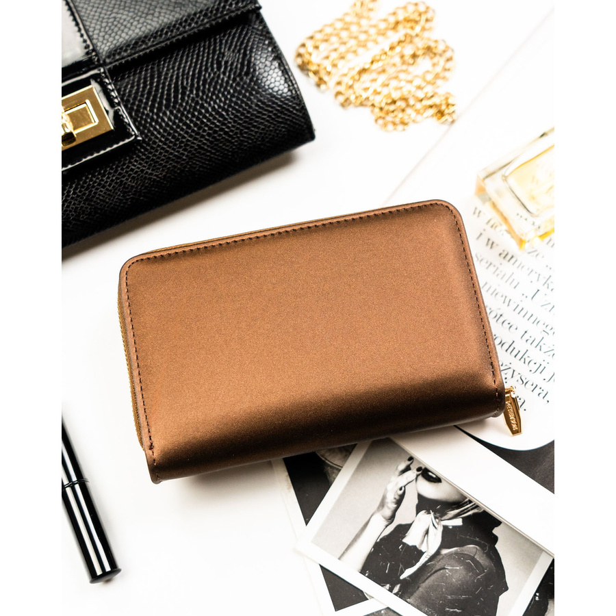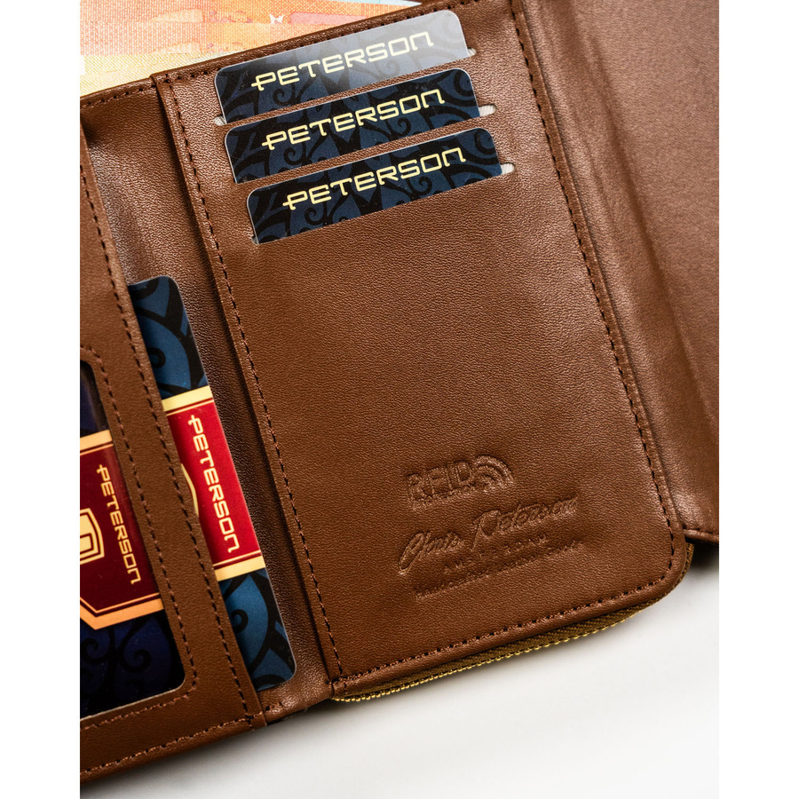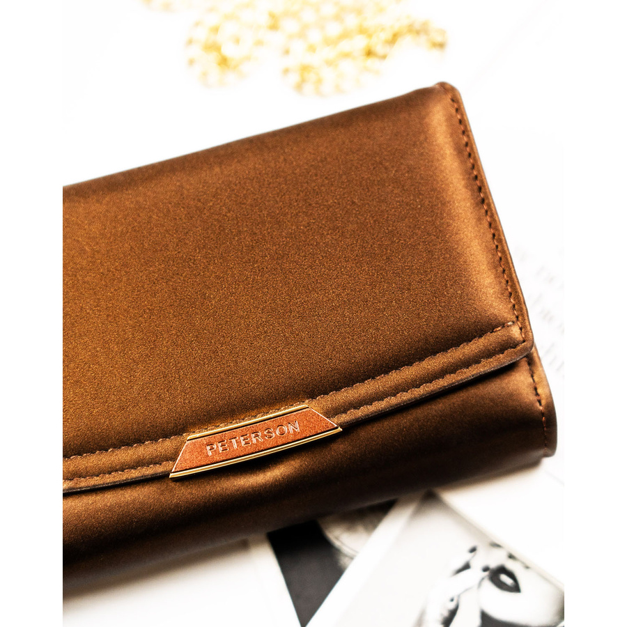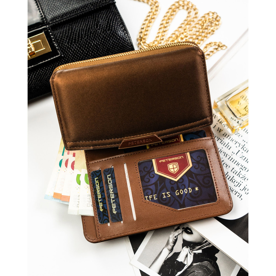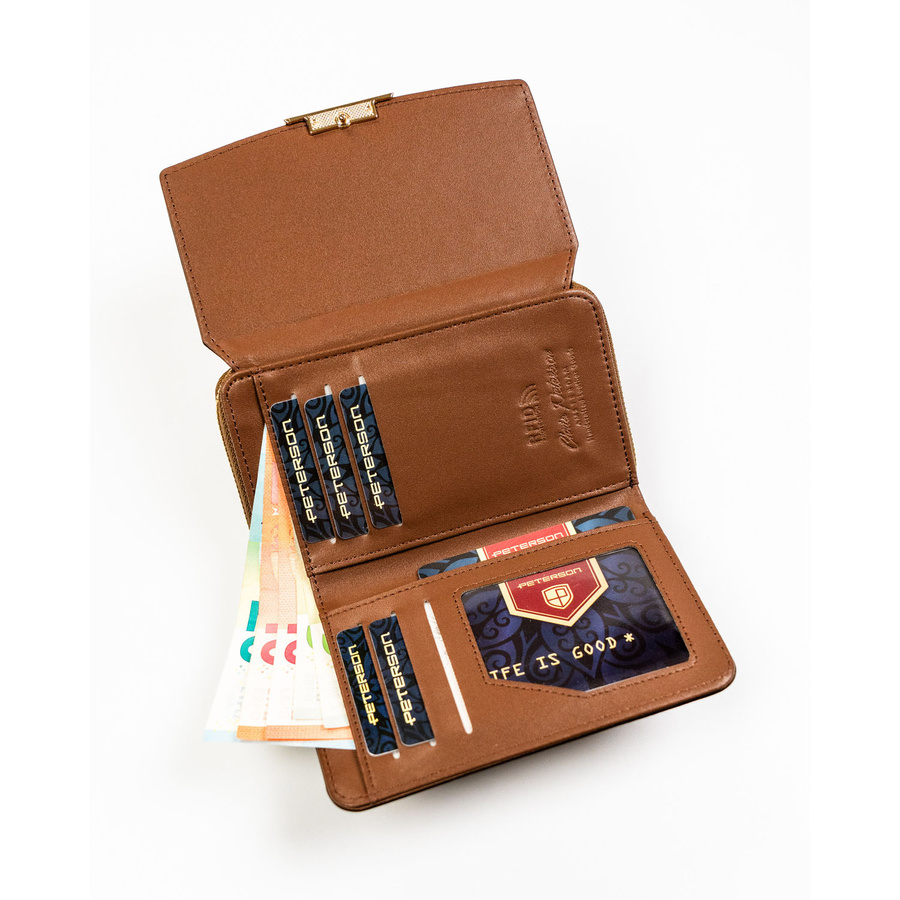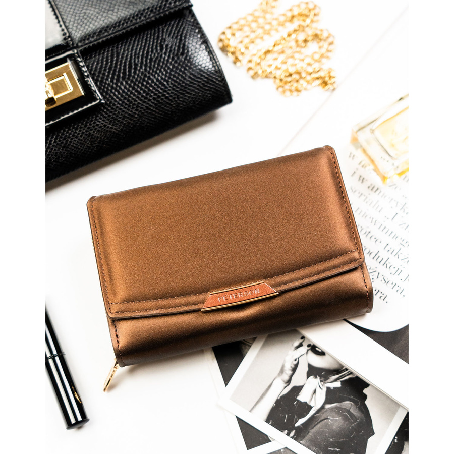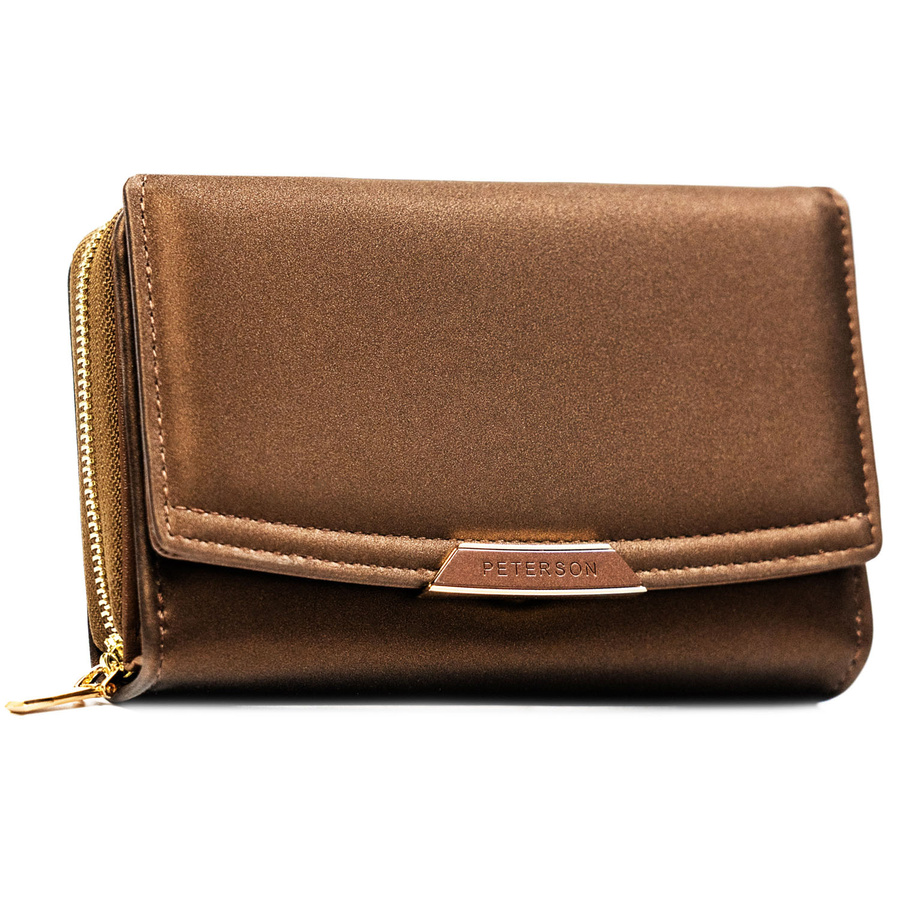 Brązowy portfel damski ze skóry ekologicznej zamykany na zatrzask i suwak - Peterson