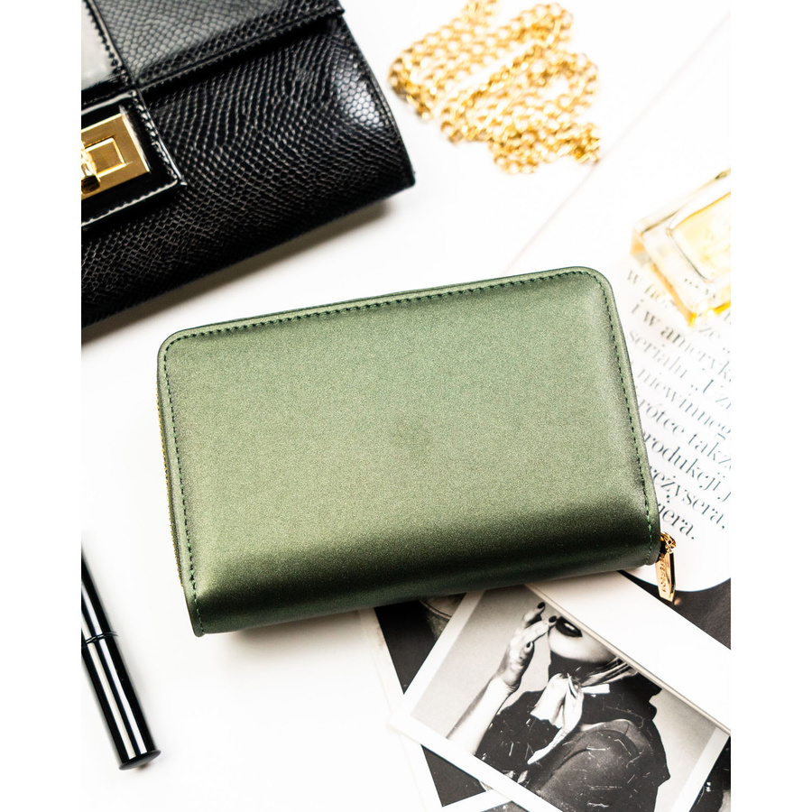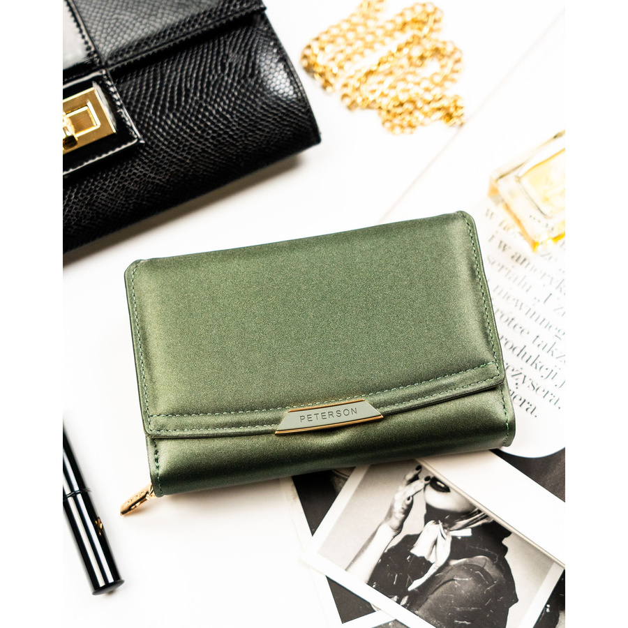 Portfel damski ze skóry ekologicznej w zielonym kolorze wyposażony w system RFID - Peterson