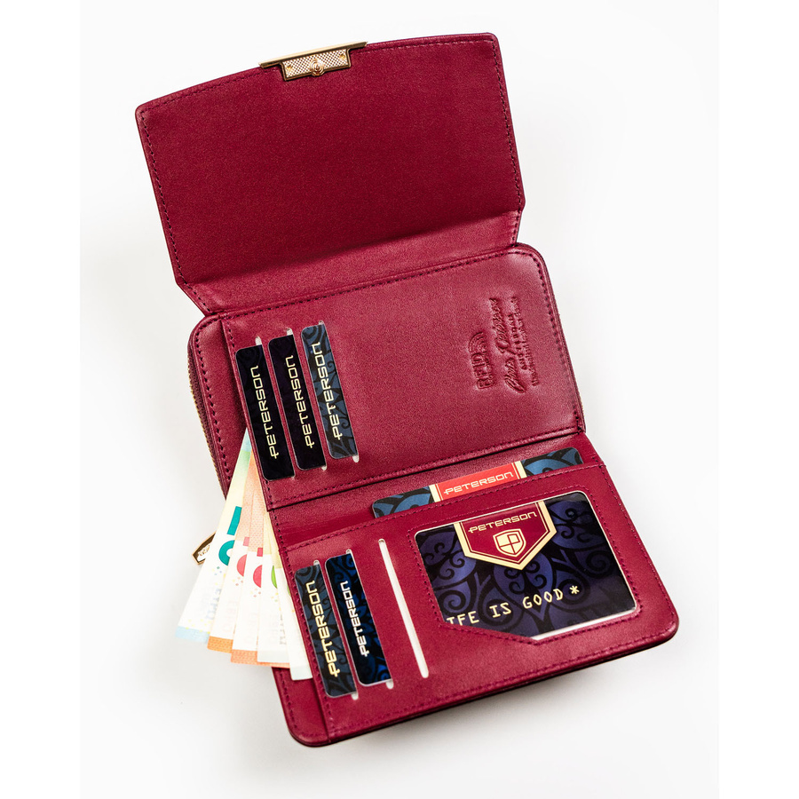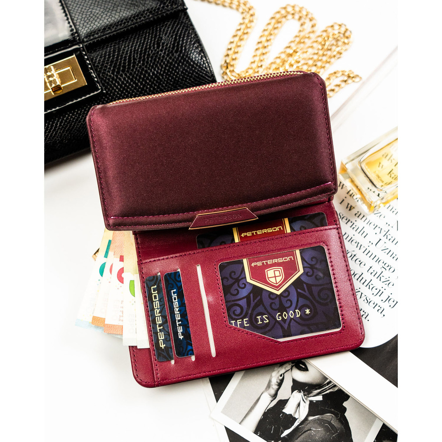 Portfel damski ze skóry ekologicznej w fioletowym kolorze wyposażony w system RFID - Peterson