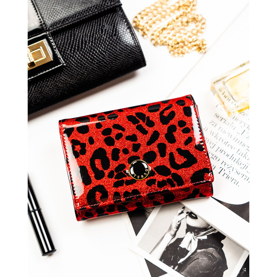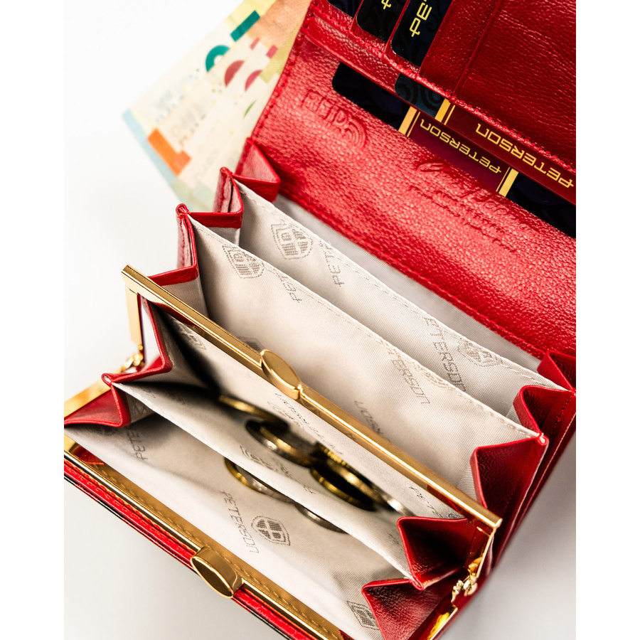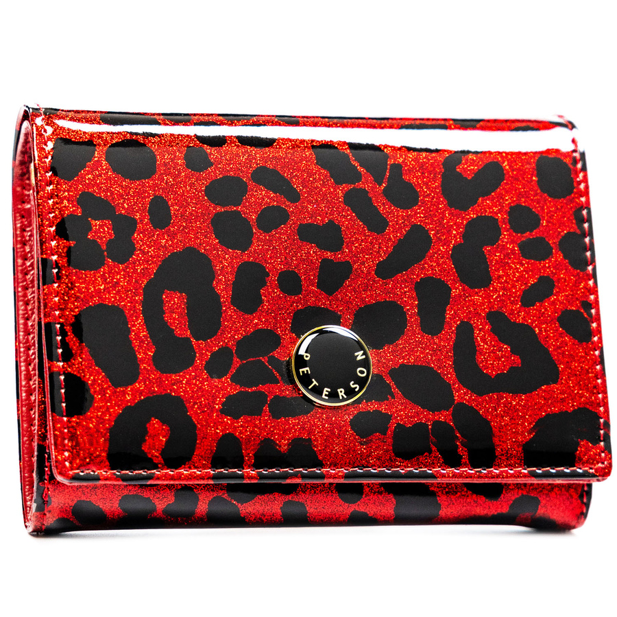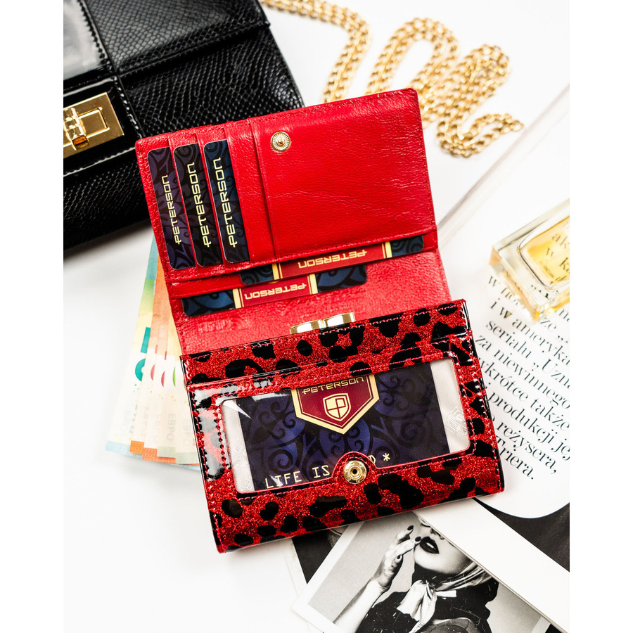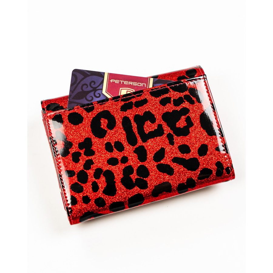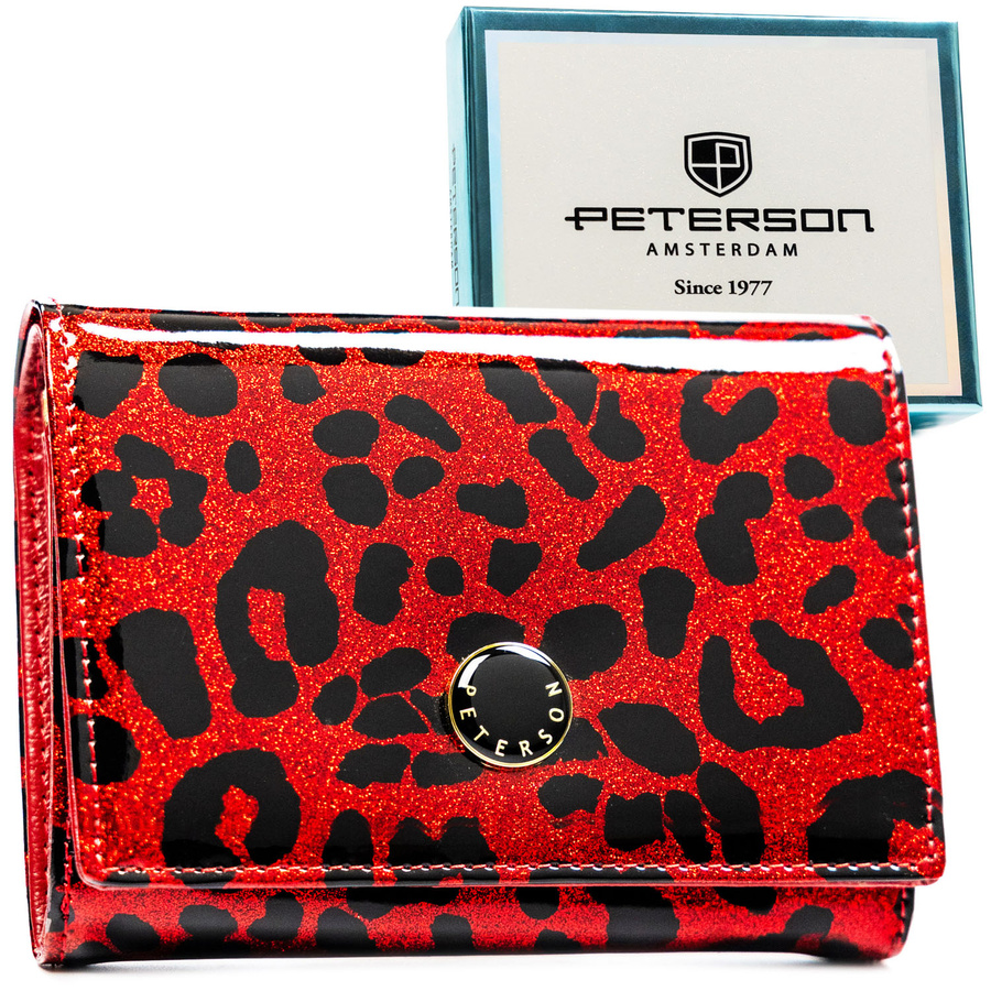 Czerwony portfel damski ze skóry ekologicznej i naturalnej w cętki - Peterson