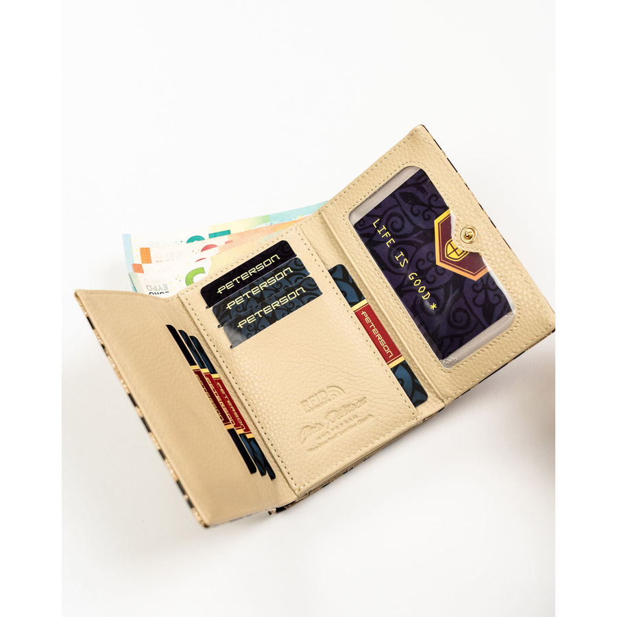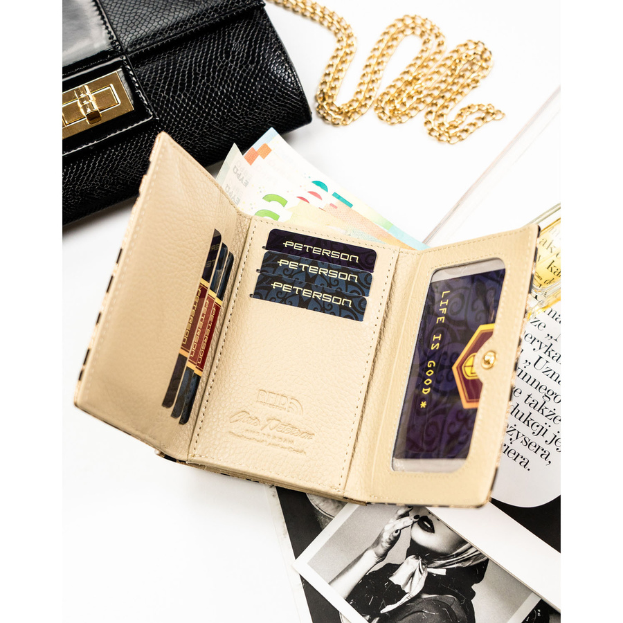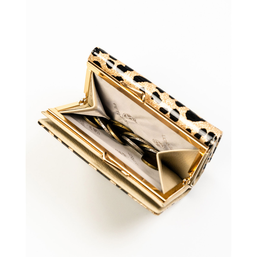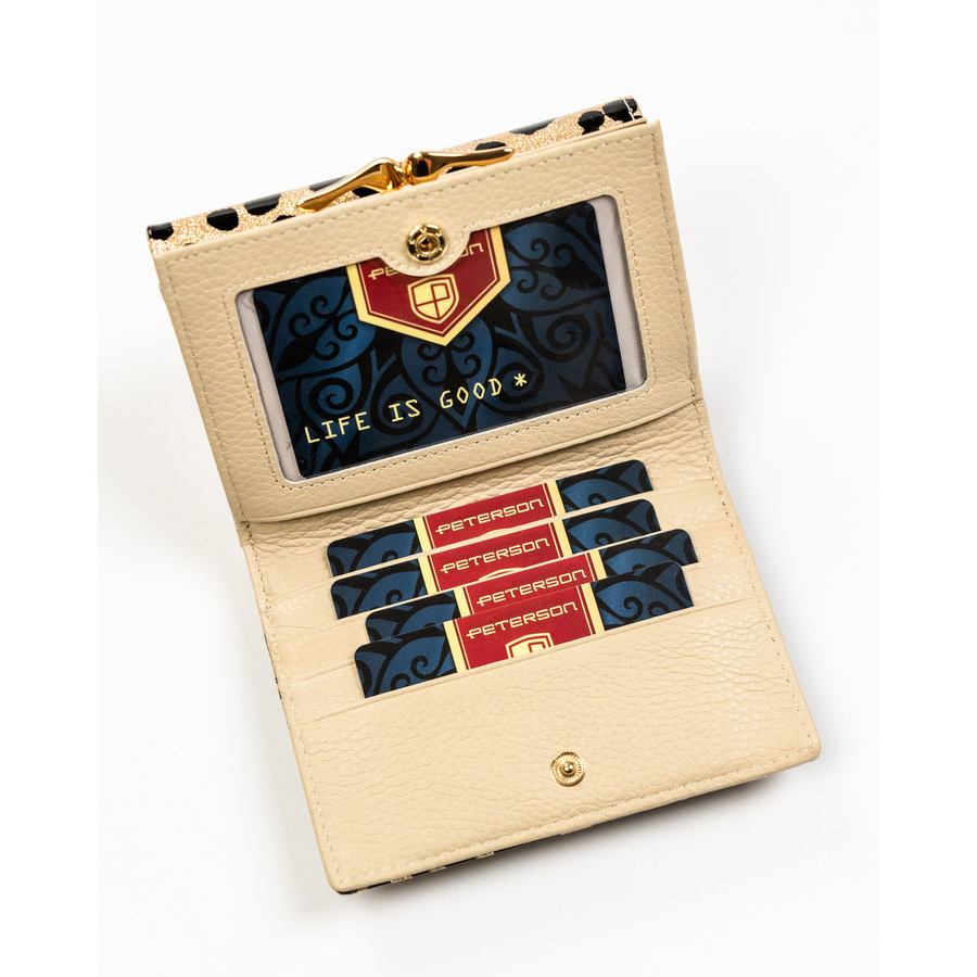Złoty portfel damski ze skóry ekologicznej i naturalnej w cętki, zamykany biglem i zatrzaskiem - Peterson
