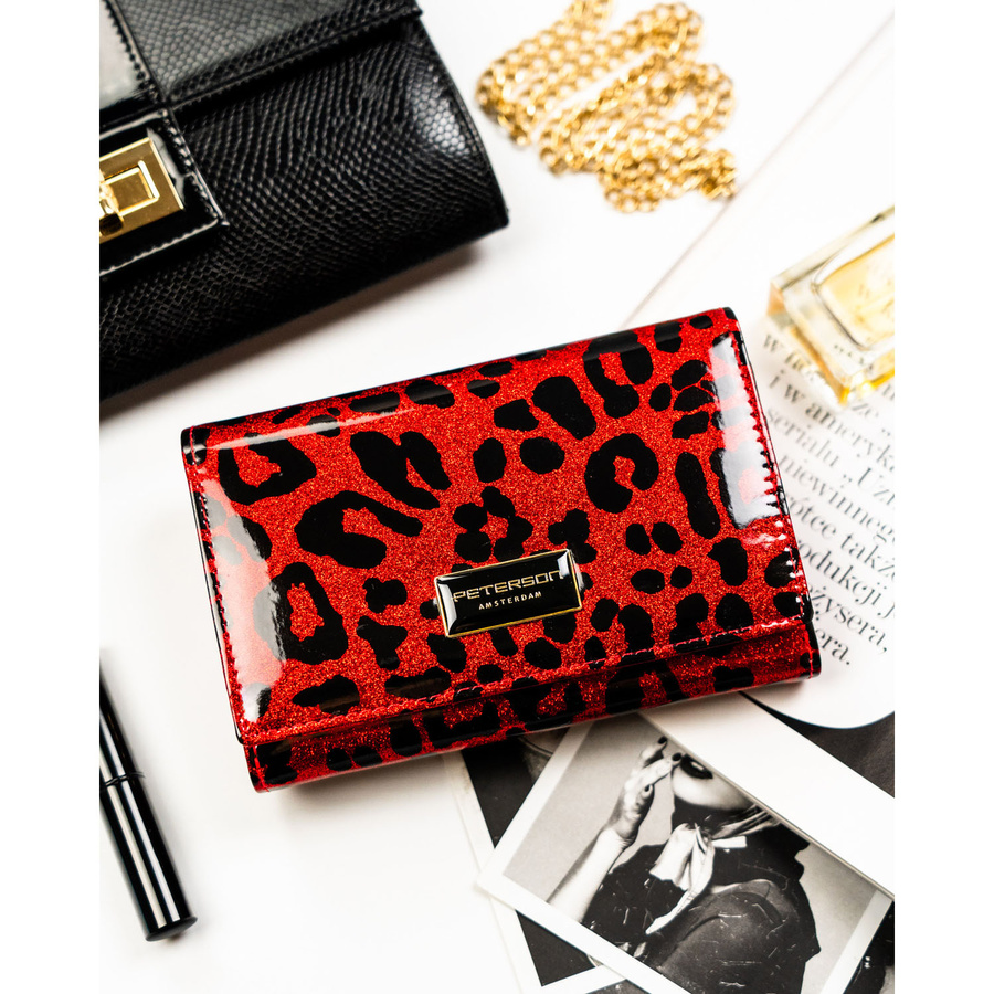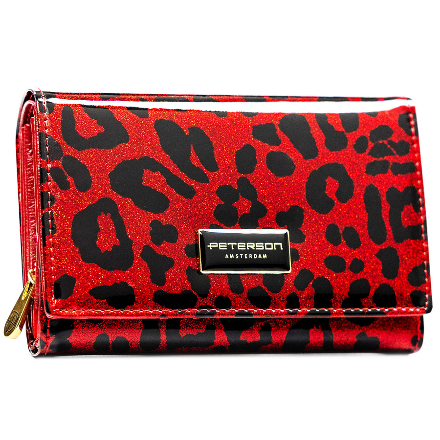 Portfel damski ze skóry ekologicznej i naturalnej w czerwonym kolorze z kieszenią zewnętrzną - Peterson