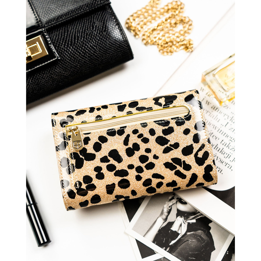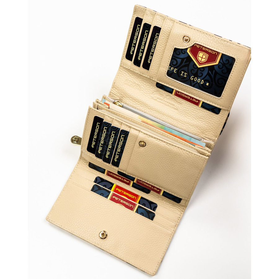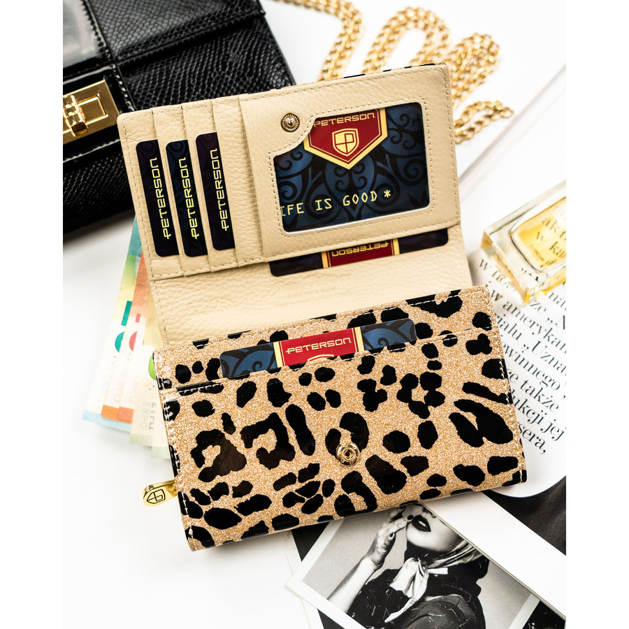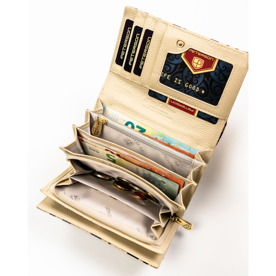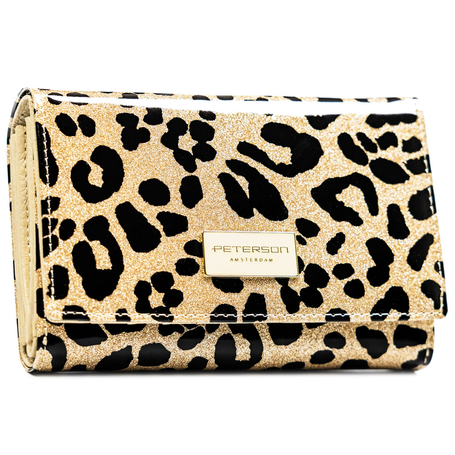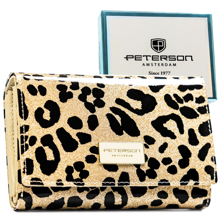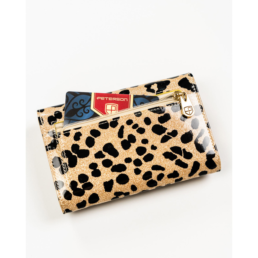 Portfel damski ze skóry ekologicznej i naturalnej w złotym kolorze z kieszenią zewnętrzną - Peterson