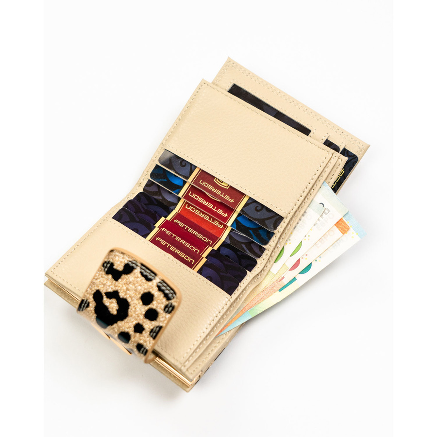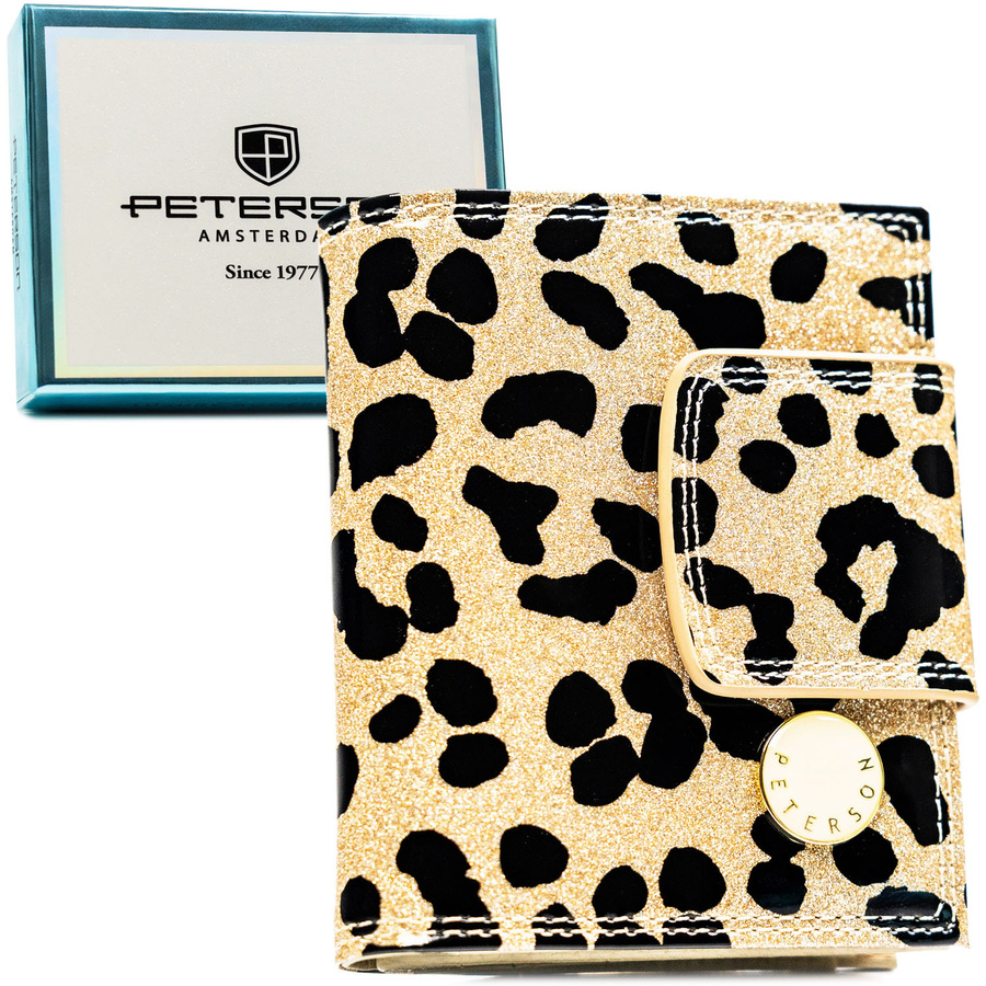 Mały portfel damski ze skóry ekologicznej i naturalnej w złotym kolorze - Peterson