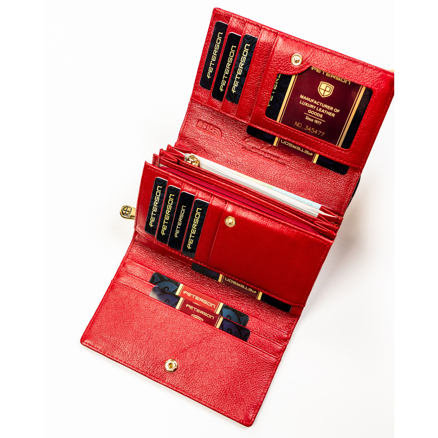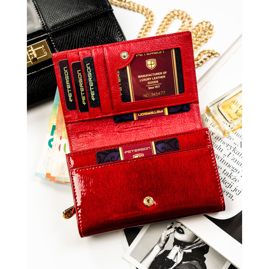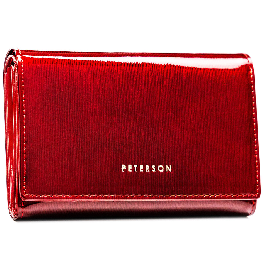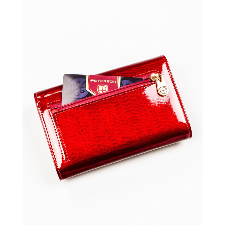 Lakierowany, czerwony portfel damski zamykany na zatrzask - Peterson