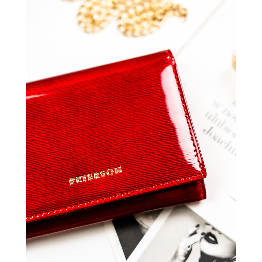 Czerwony portfel damski wykonany z lakierowanej skóry naturalnej, zamykany zatrzaskiem - Peterson