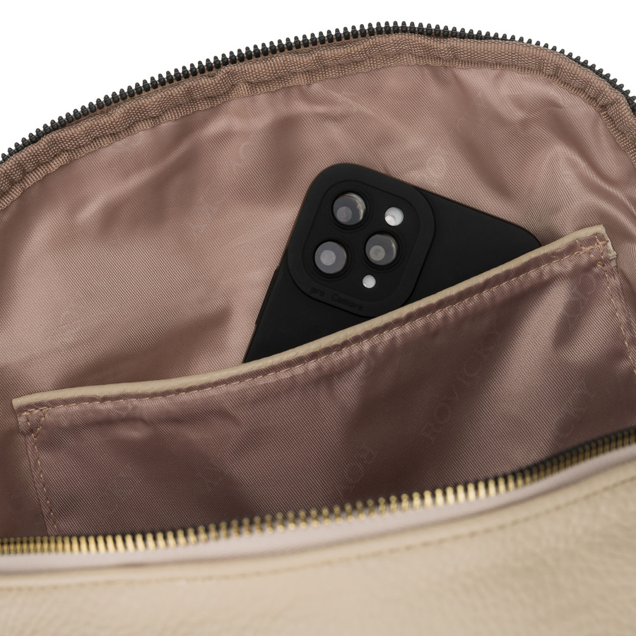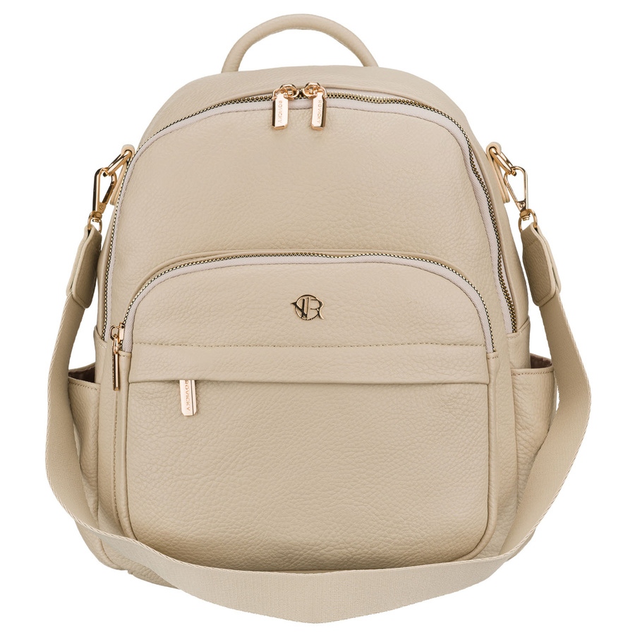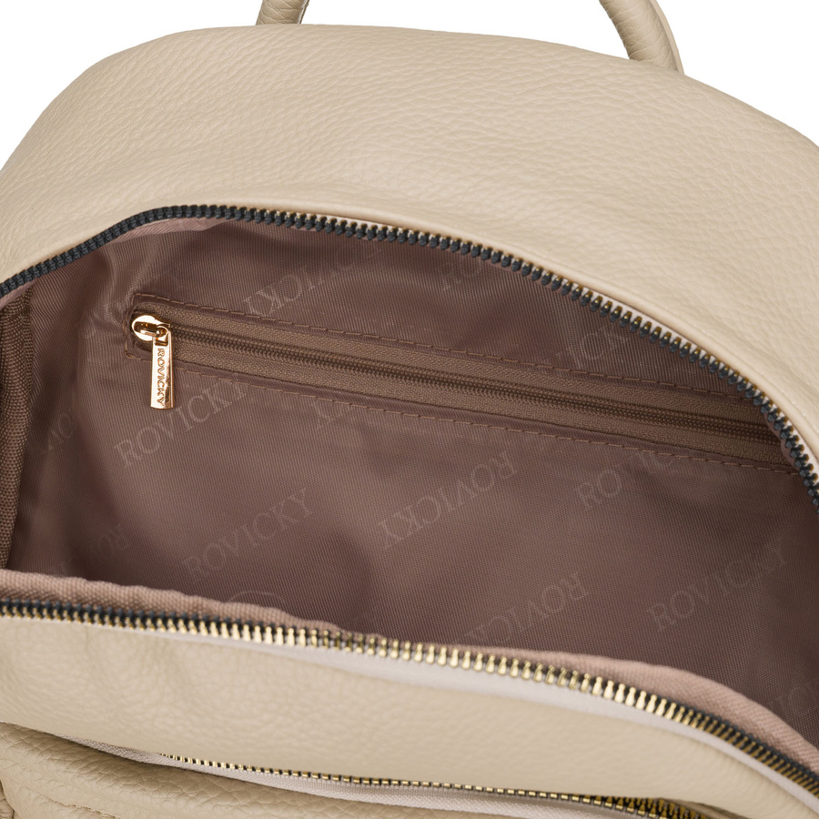 Elegancki plecak damski z bocznymi kieszeniami wykonany ze skóry ekologicznej w beżowym kolorze - Rovicky