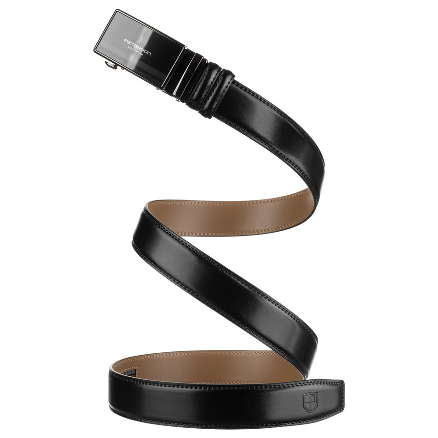 Elegancki, skórzany pasek męski w czarnym kolorze z automatyczną klamrą - Peterson