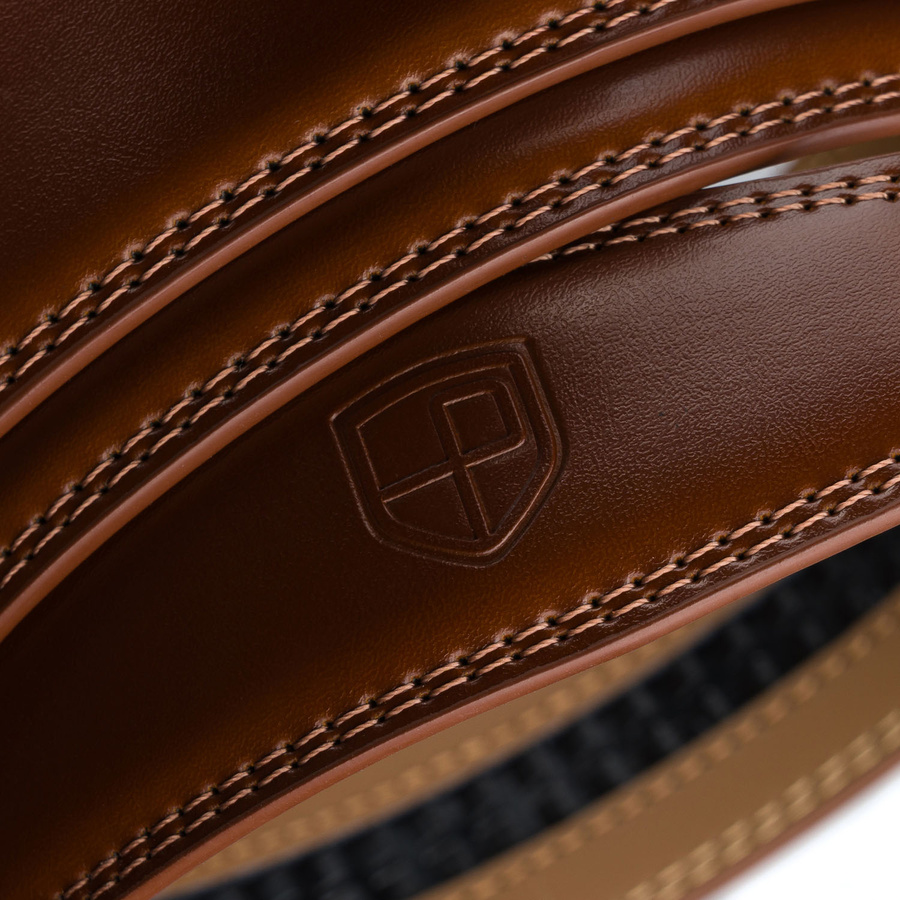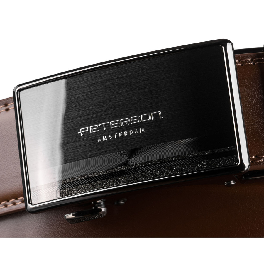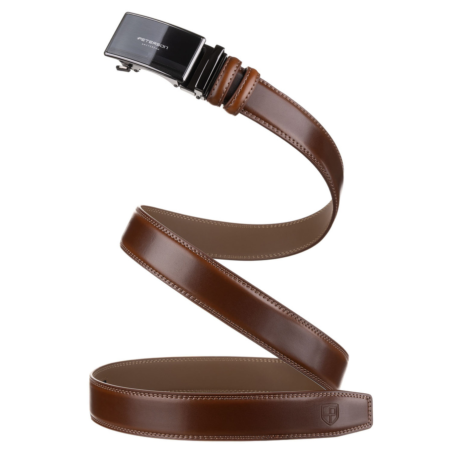 Elegancki, skórzany pasek męski w brązowym kolorze z automatyczną klamrą - Peterson