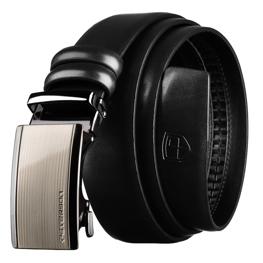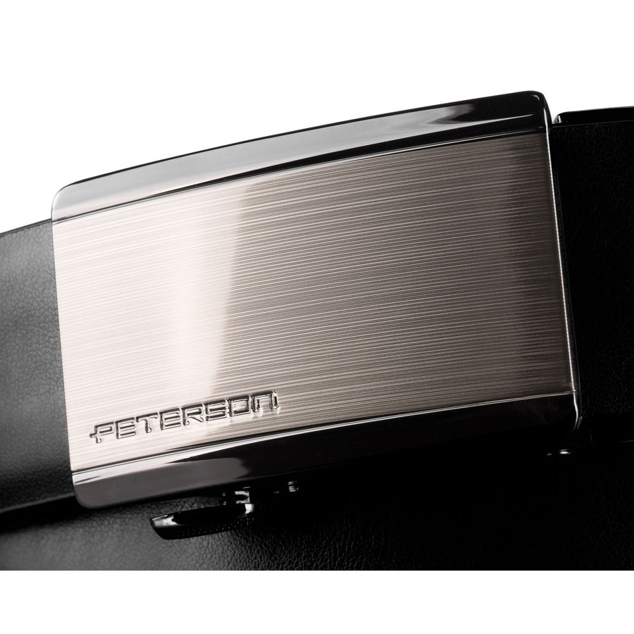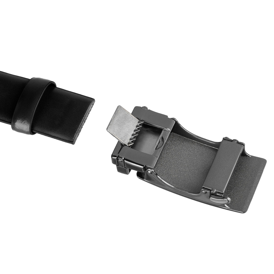 Czarny pasek męski z automatyczną klamrą wykonany ze skóry naturalnej - Peterson