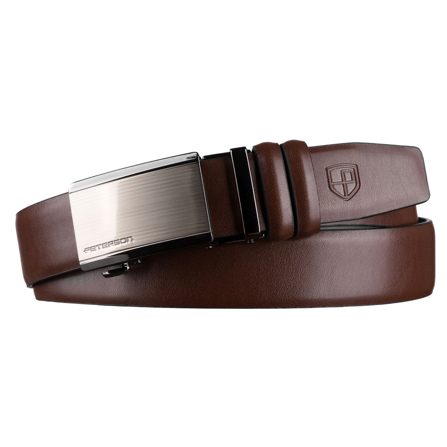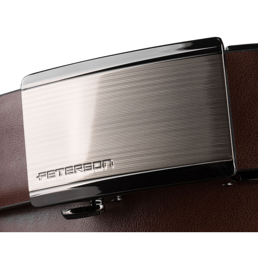 Brązowy pasek męski z automatyczną klamrą wykonany ze skóry naturalnej - Peterson