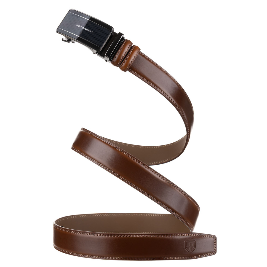 Brązowy pasek męski z automatyczną klamrą wykonany ze skóry naturalnej - Peterson