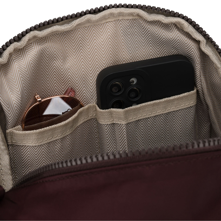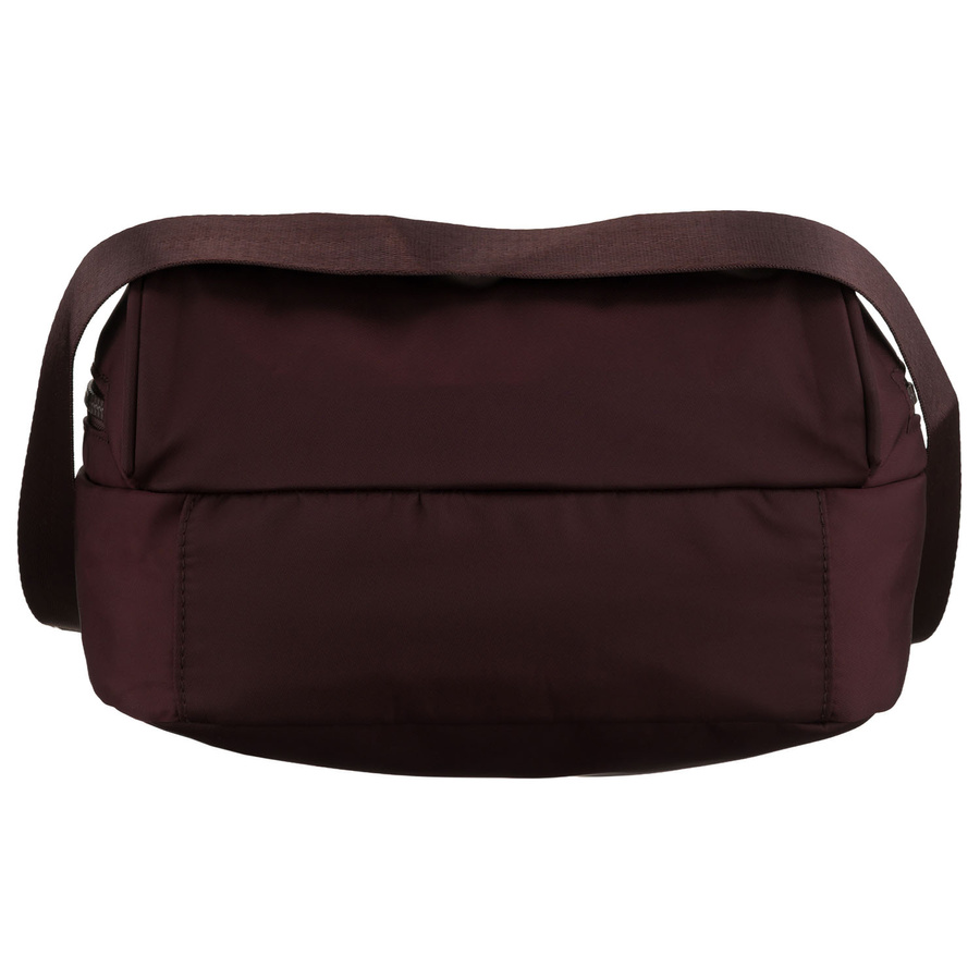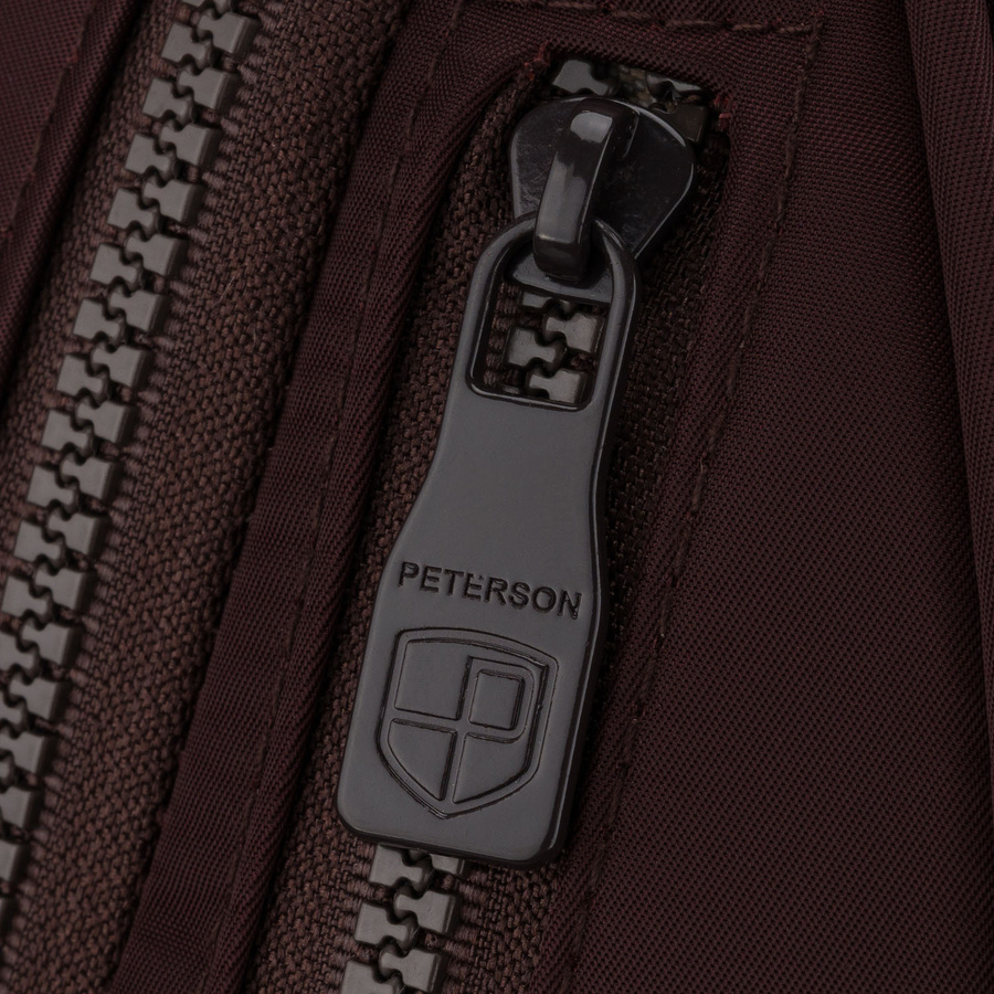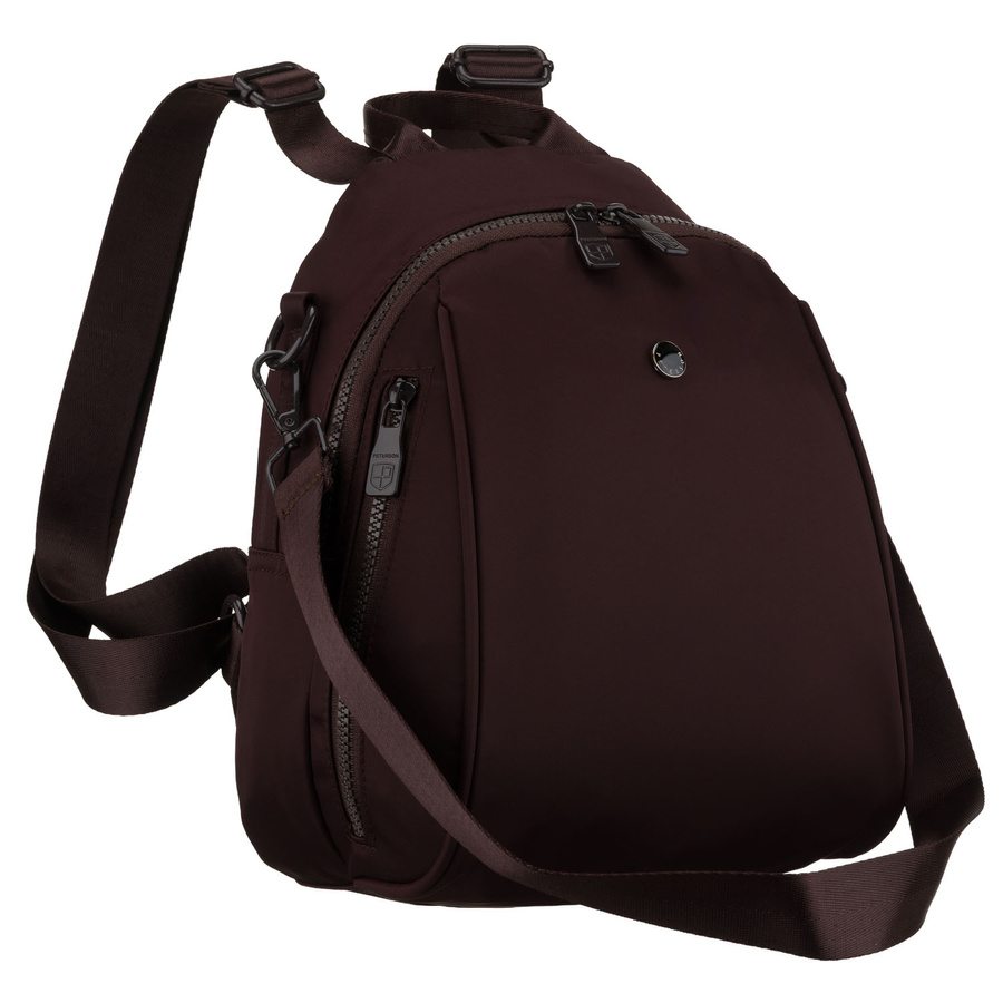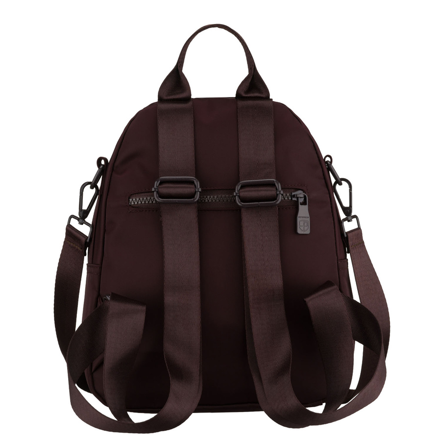 Mały, bordowy plecak damski wykonany z poliestru, wyposażony w dodatkowy pasek - Peterson