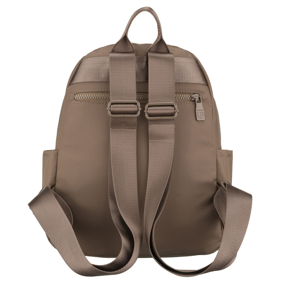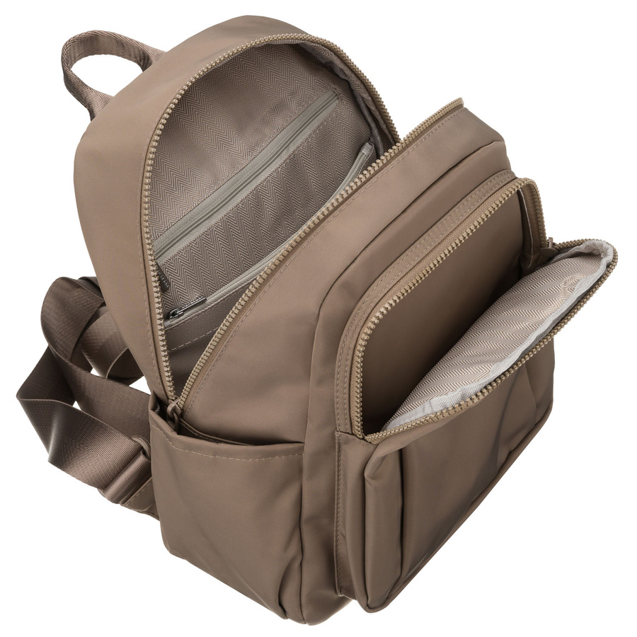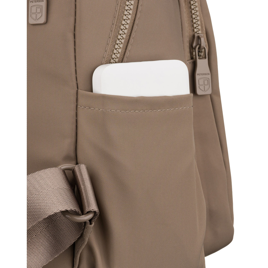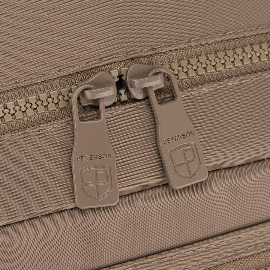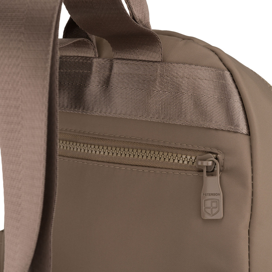Beżowy plecak damski wykonany z poliestru, zawieszony na regulowanych szelkach - Peterson